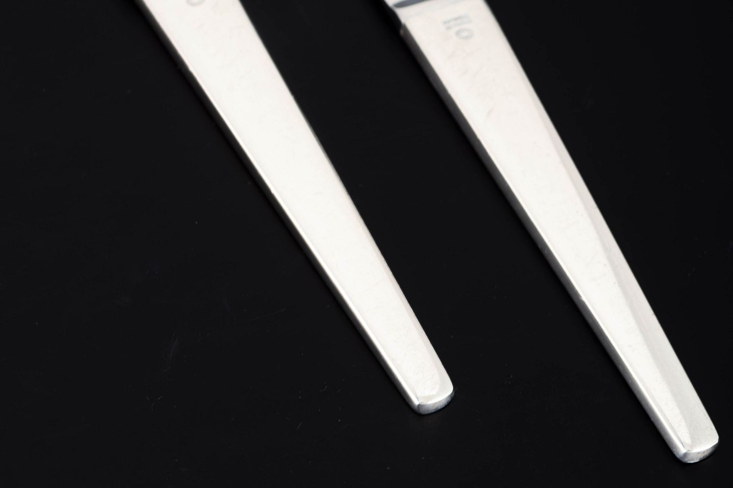 Text zugänglich auf Dänische: Henning Koppel for Georg Jensen, to frokostknive Caravel.