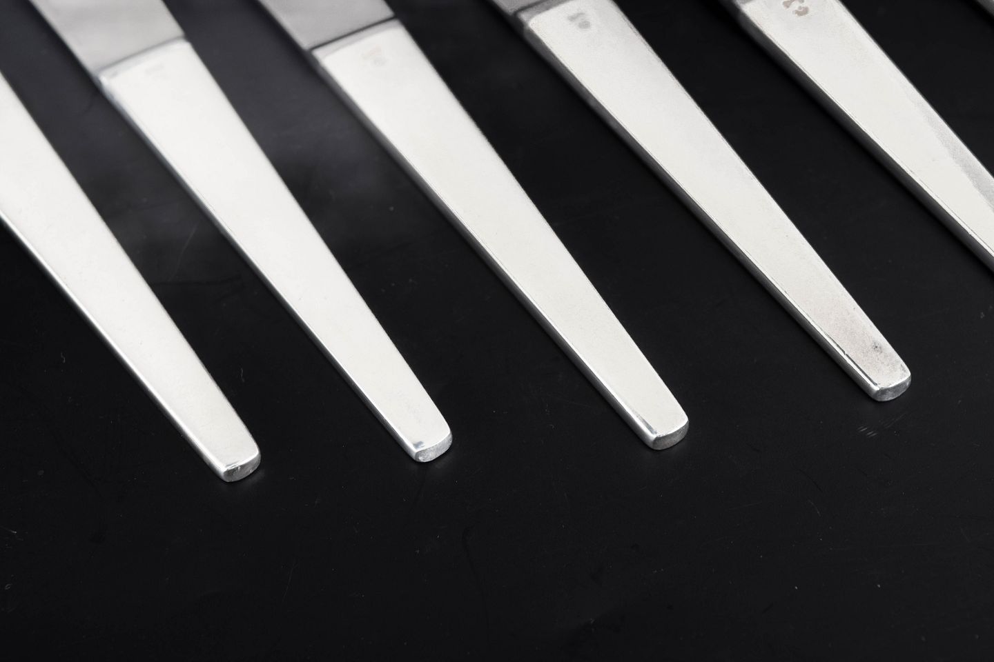 Text zugänglich auf Dänische: Henning Koppel for Georg Jensen, sæt af seks middagsknive Caravel.