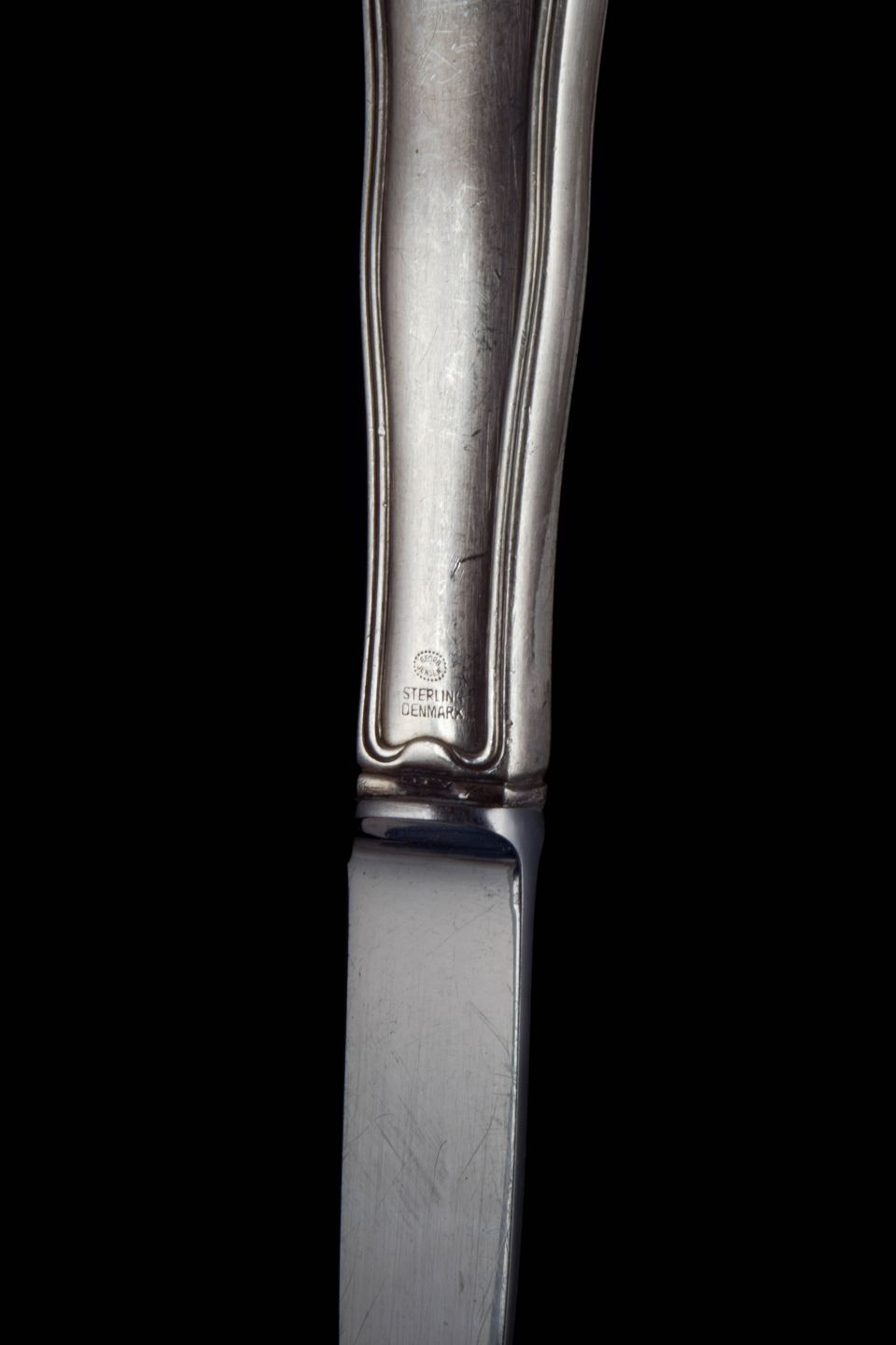 Text zugänglich auf Dänische: Georg Jensen, rejsekniv, Dobbeltriflet.