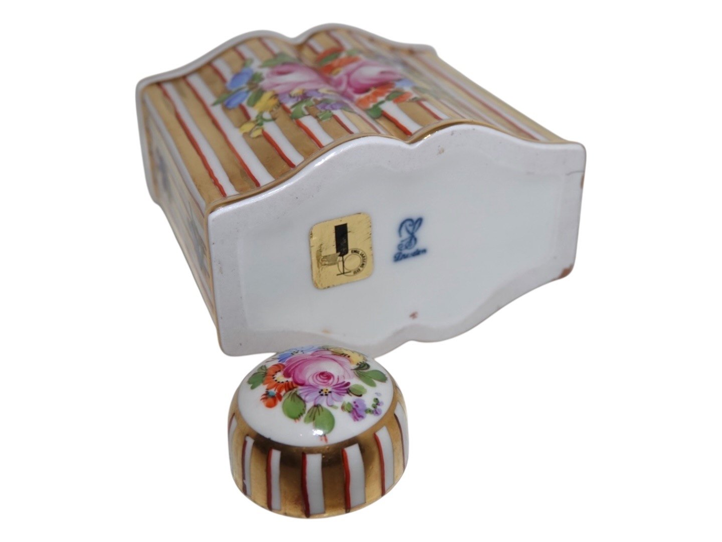 Dresden porcelæn, tedåse med Saksisk Blomst dekoration.