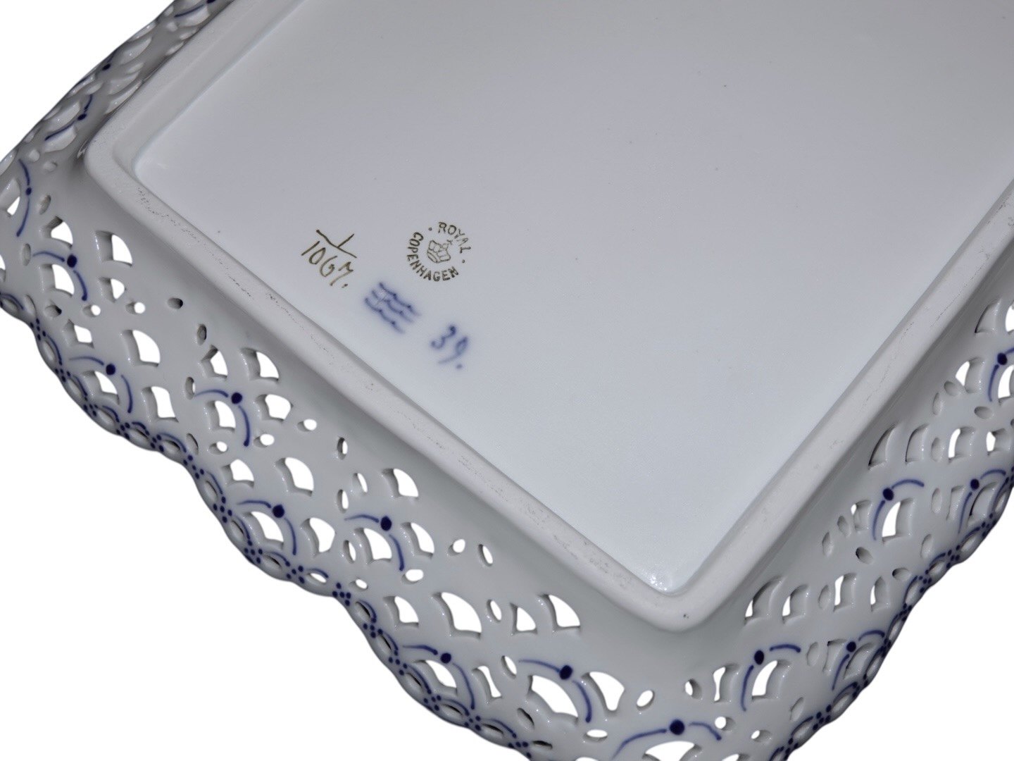 Royal Copenhagen Musselmalet Helblonde, stort og meget sjældent isfad / bakke.