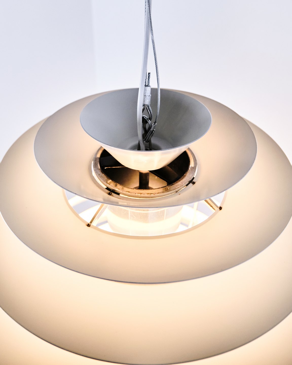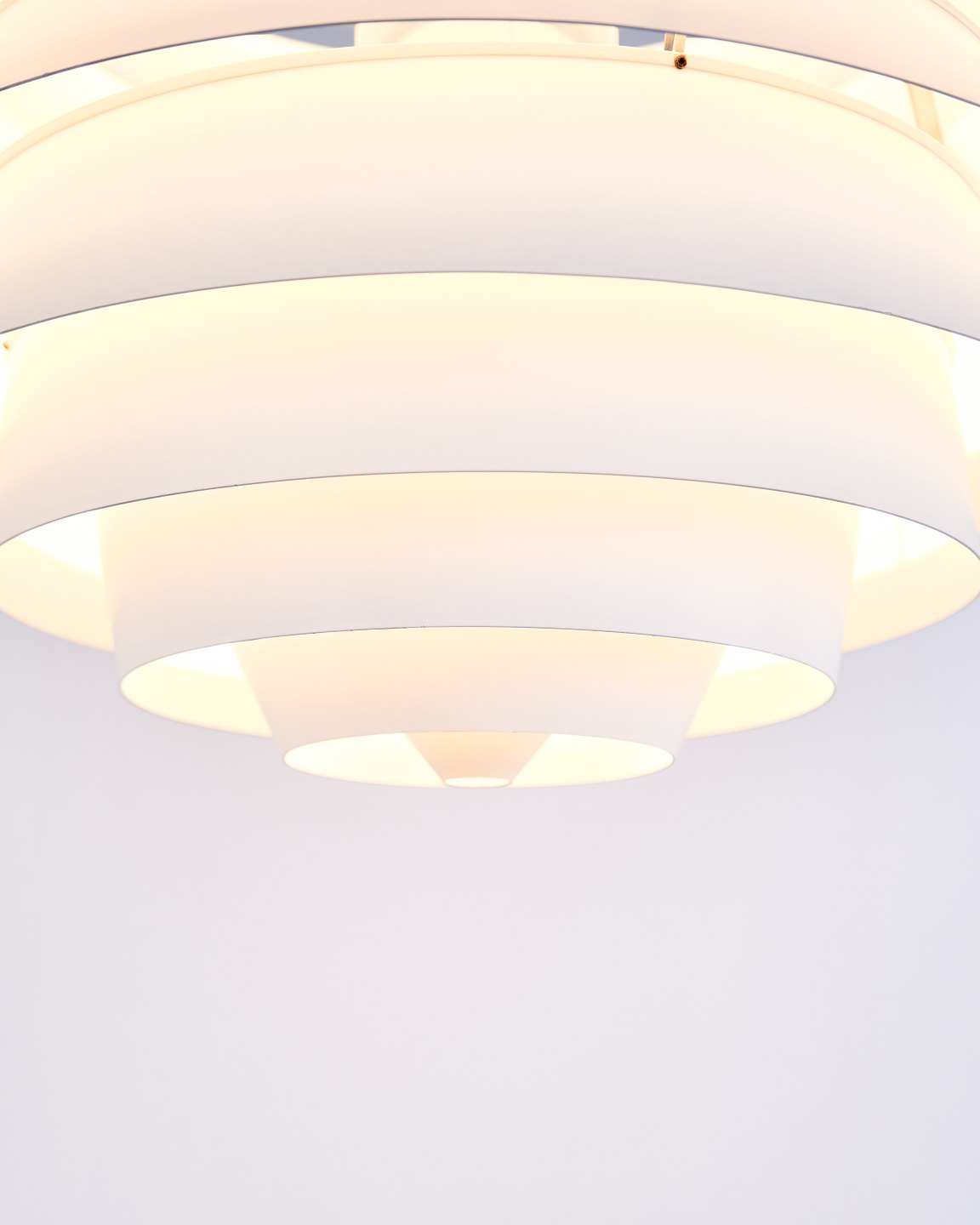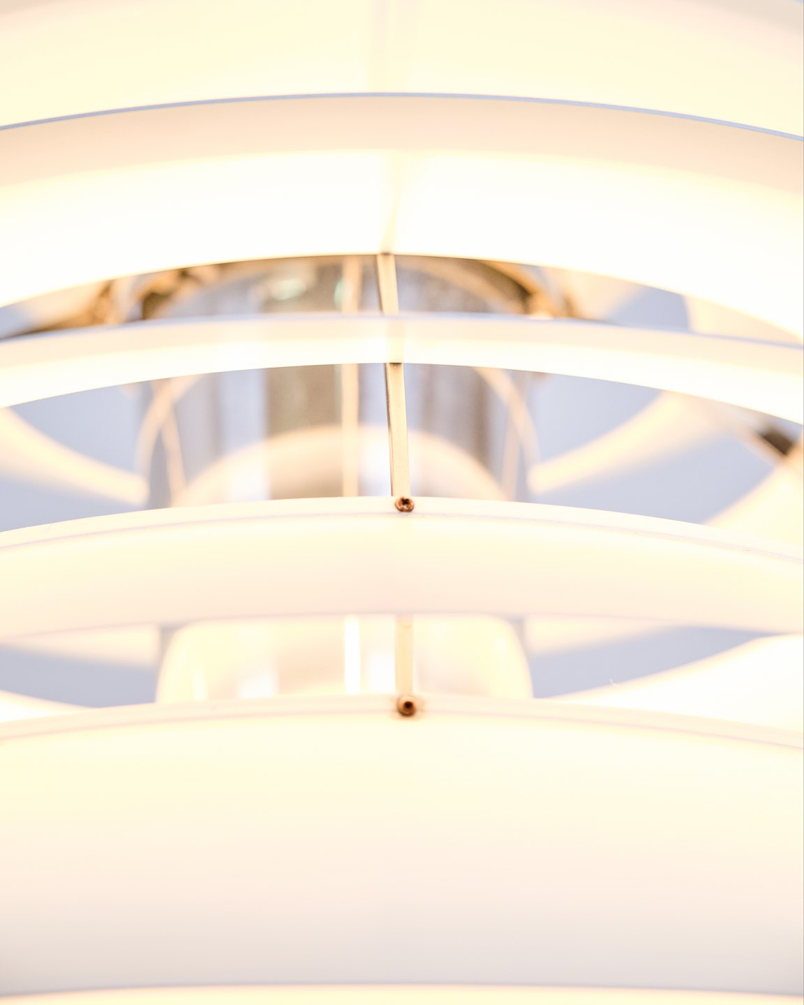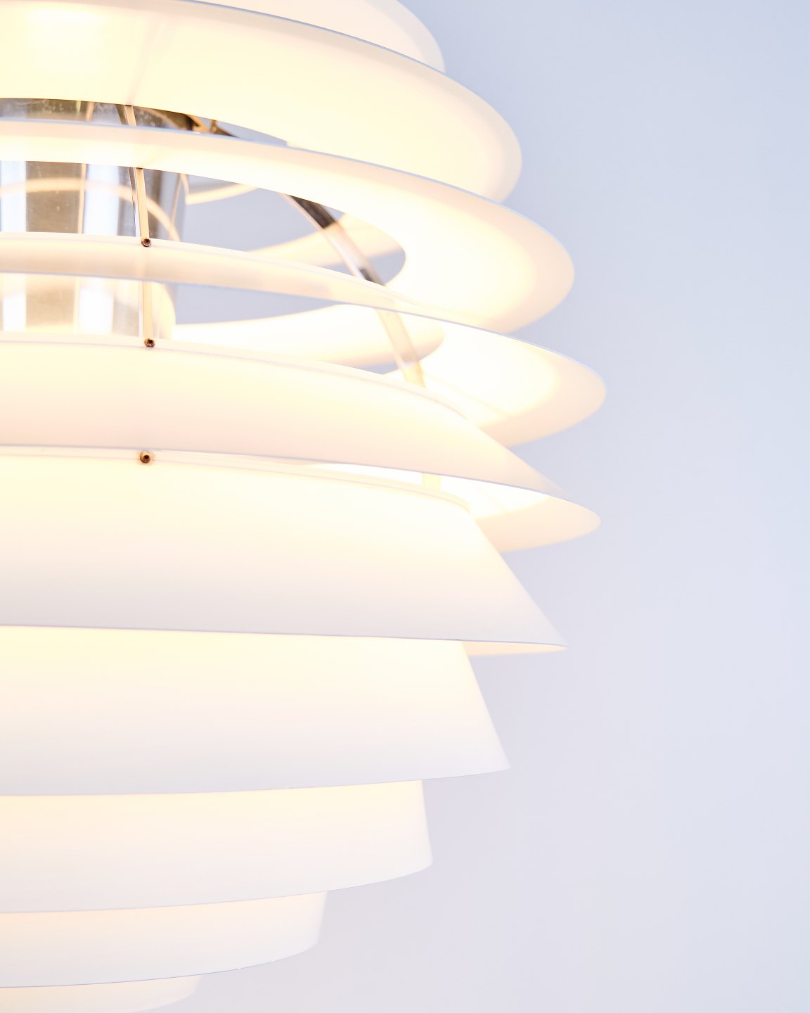PH Louvre ist eine Weiterentwicklung von Henningsens früheren Arbeiten, darunter Spiralen aus dem Jahr 1942, und der Name bezieht sich auf die Lamellenstruktur, bei der das Licht elegant durch die Schirme gefiltert wird.