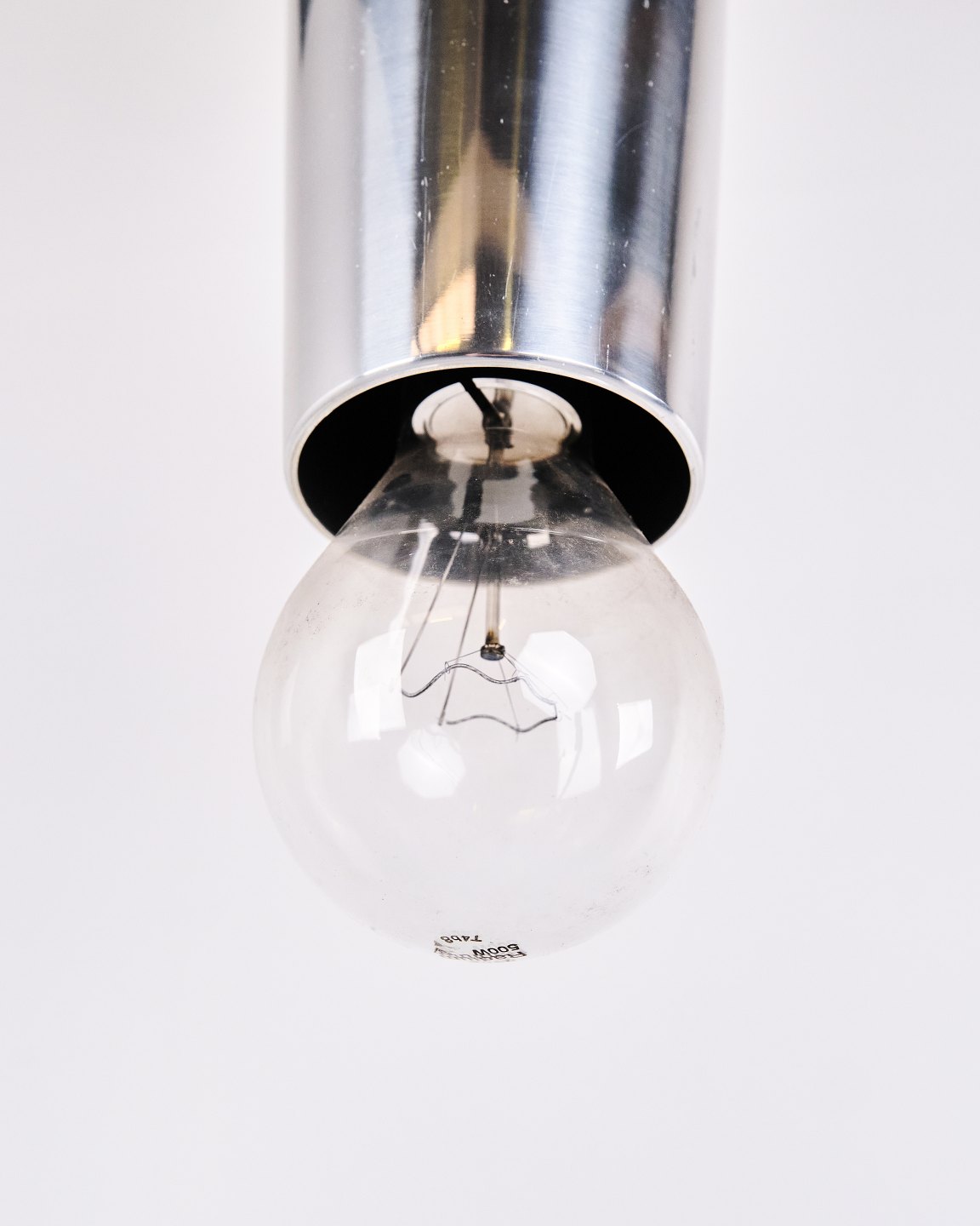Ikonische Pendelleuchte, PH Louvre (früher PH Kugle genannt), entworfen von Poul Henningsen im Jahr 1957 für die Adventistenkirche in Skodsborg. Die Leuchte besteht aus 13 Lamellen, die auf einer inneren Konstruktion montiert sind und ein weiches und blendfreies Licht gewährleisten. Das kugelförmige Design sorgt für eine gleichmäßige Lichtverteilung und einen skulpturalen Ausdruck.