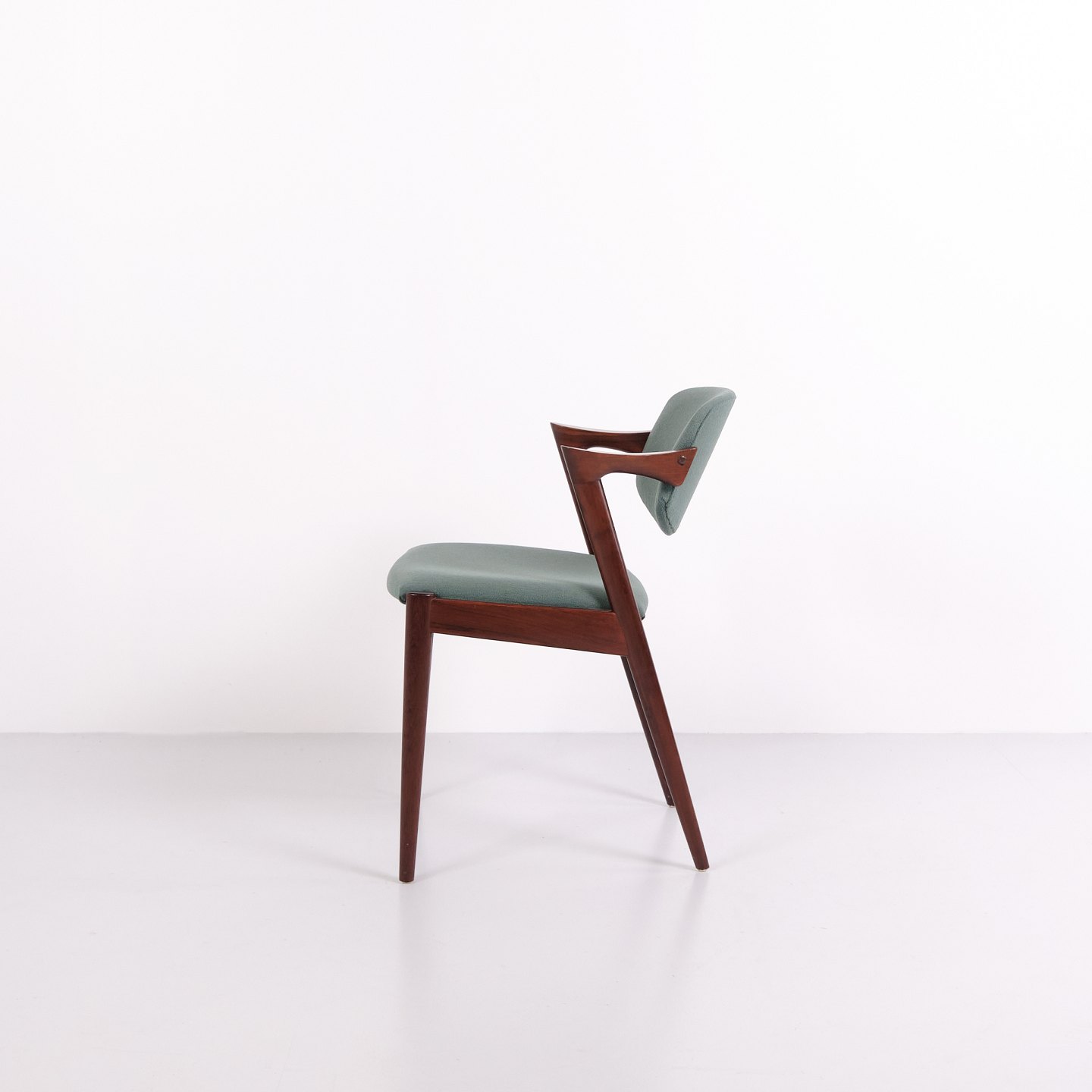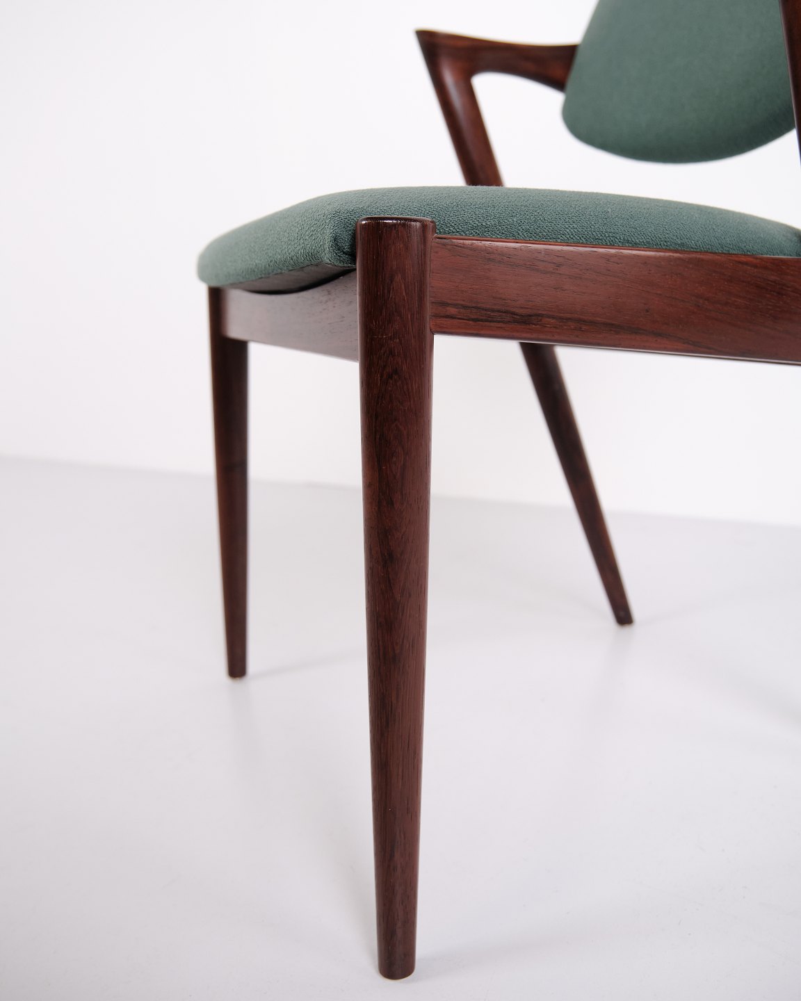 Satz Esszimmerstühle, Modell 42, entworfen von Kai Kristiansen in den 1960er Jahren. Die Stühle sind aus Palisander gefertigt und zeichnen sich durch ihre eleganten Proportionen, die skulpturale Rückenlehne und präzise dänische Schreinerarbeit aus. Modell 42 gilt als ein markantes Beispiel für dänisches Möbeldesign aus der Mitte des 20. Jahrhunderts.