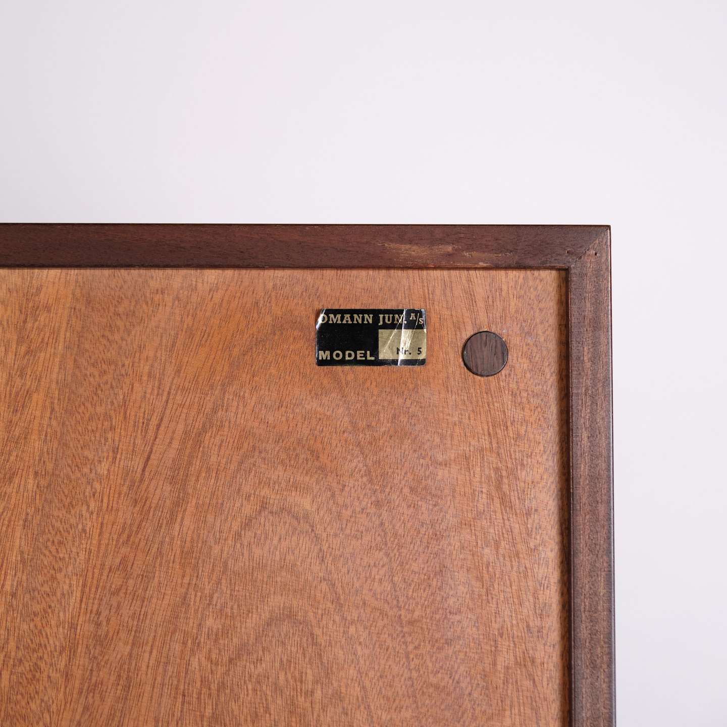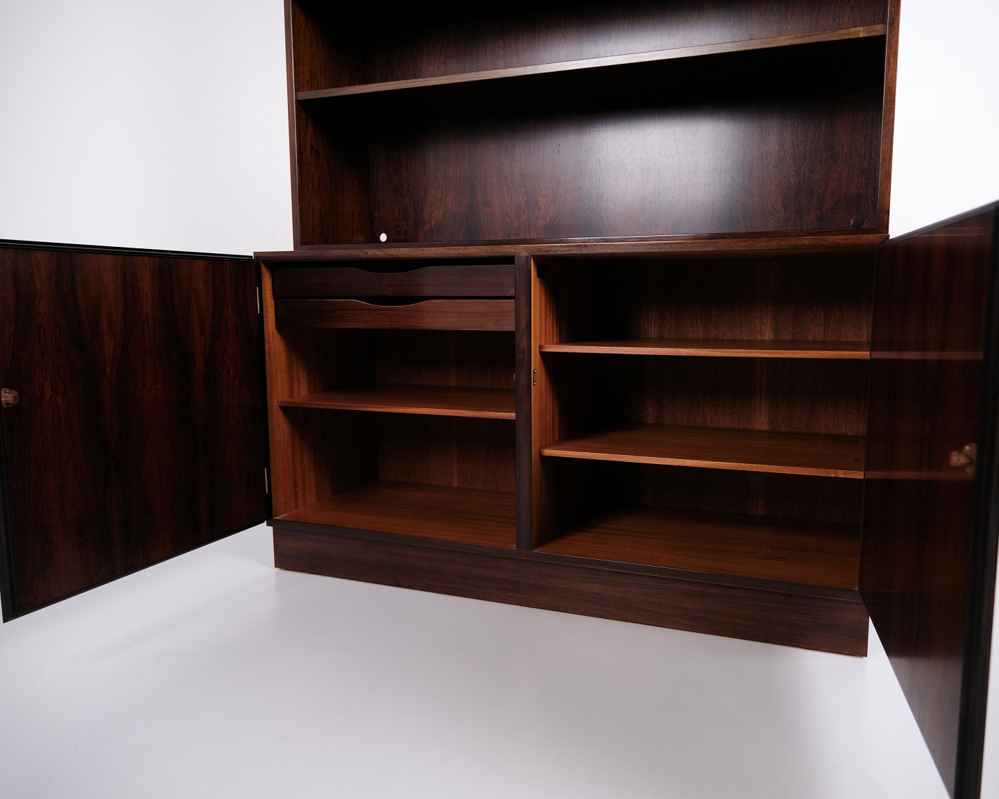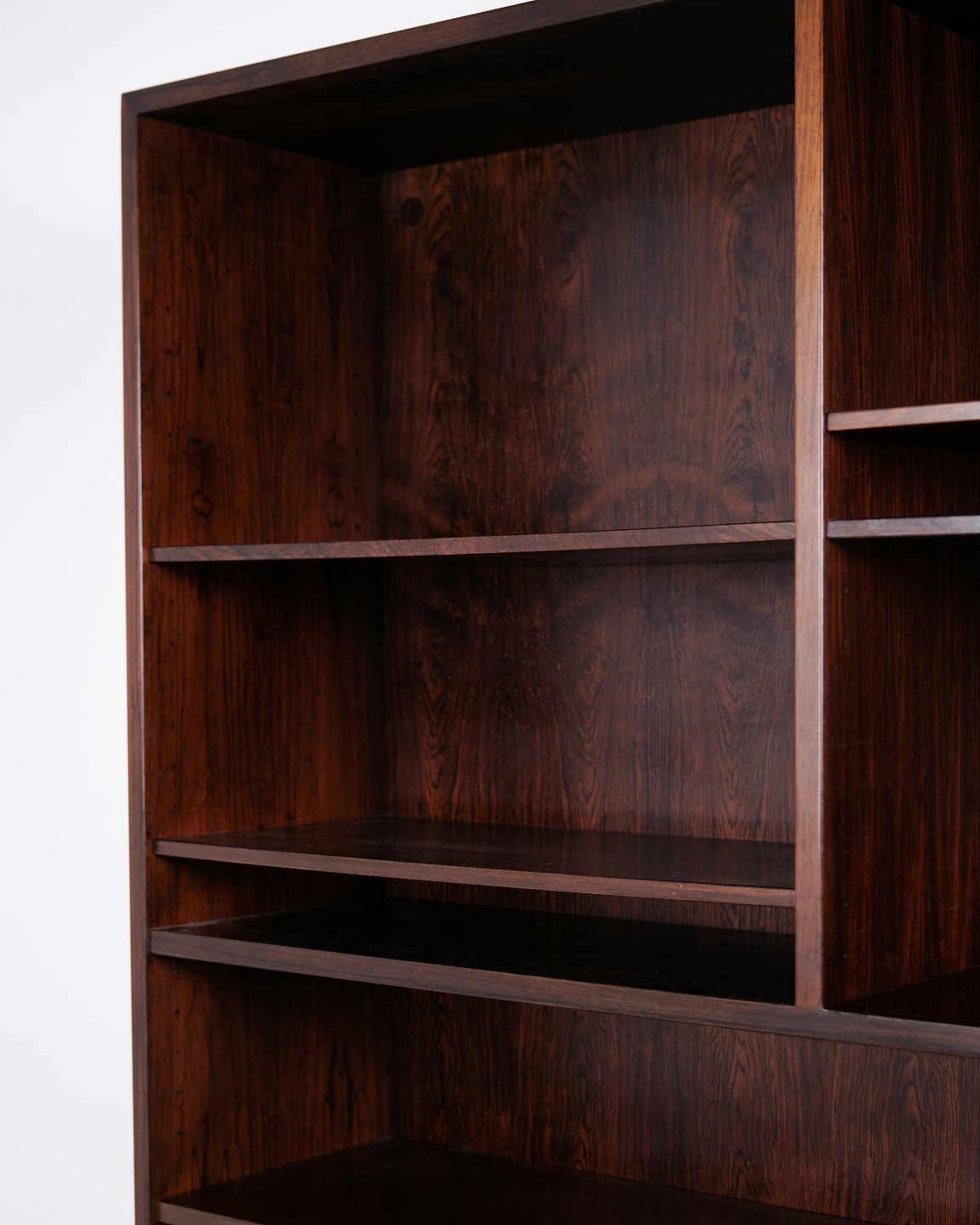 Regal, Modell 5, entworfen von Gunni Omann und hergestellt bei Poul Hundevad in Dänemark in den 1960er Jahren. Das Möbel ist aus Palisander gefertigt und spiegelt die klaren Linien und die funktionale Gestaltung wider, die typisch für das dänische Möbeldesign dieser Zeit sind.