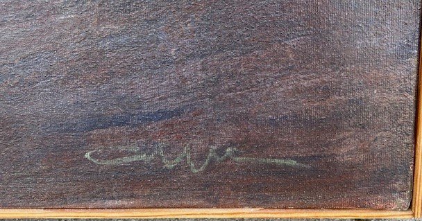 "Grålys Færøerne" flot oliemaleri i original stand, dog med krakeleringer i himlen, maleriet bør ses. Lys natur ramme.