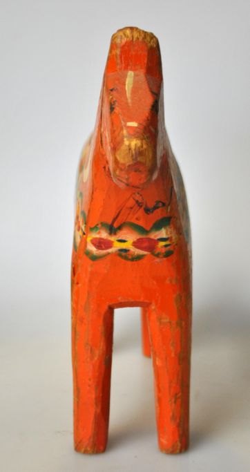Antikes bemaltes Dalar-Pferd, 19. Jahrhundert. Schweden. Höhe: 18 cm. Länge: 18 cm.