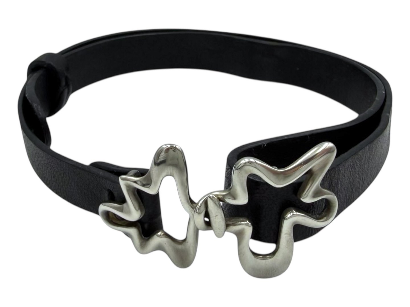 Georg Jensen sterling sølv og originalt sort læder, Splash armbånd.