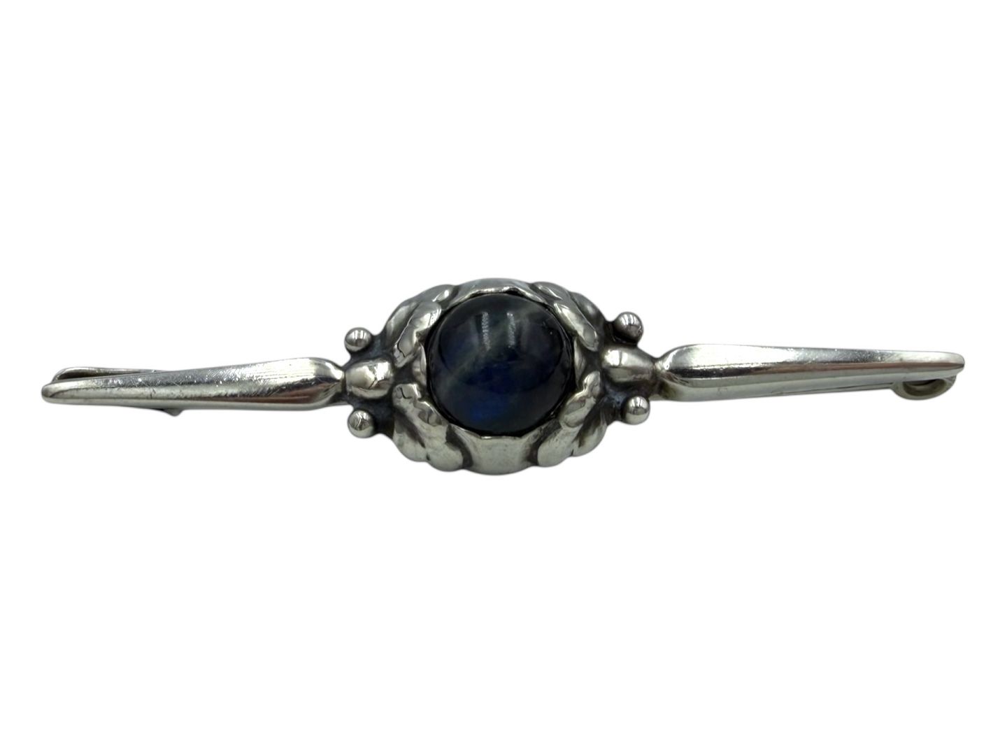 Georg Jensen sølv, tidlig broche med blå labradorit sten.