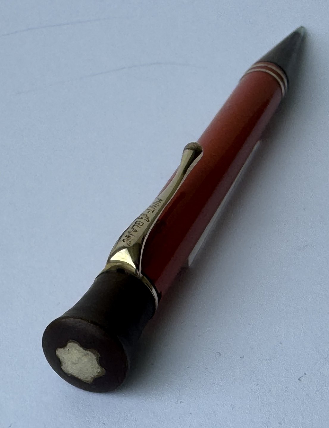 STOR HVID STJERNE: Koralrød Montblanc 53 skrueblyant pencil