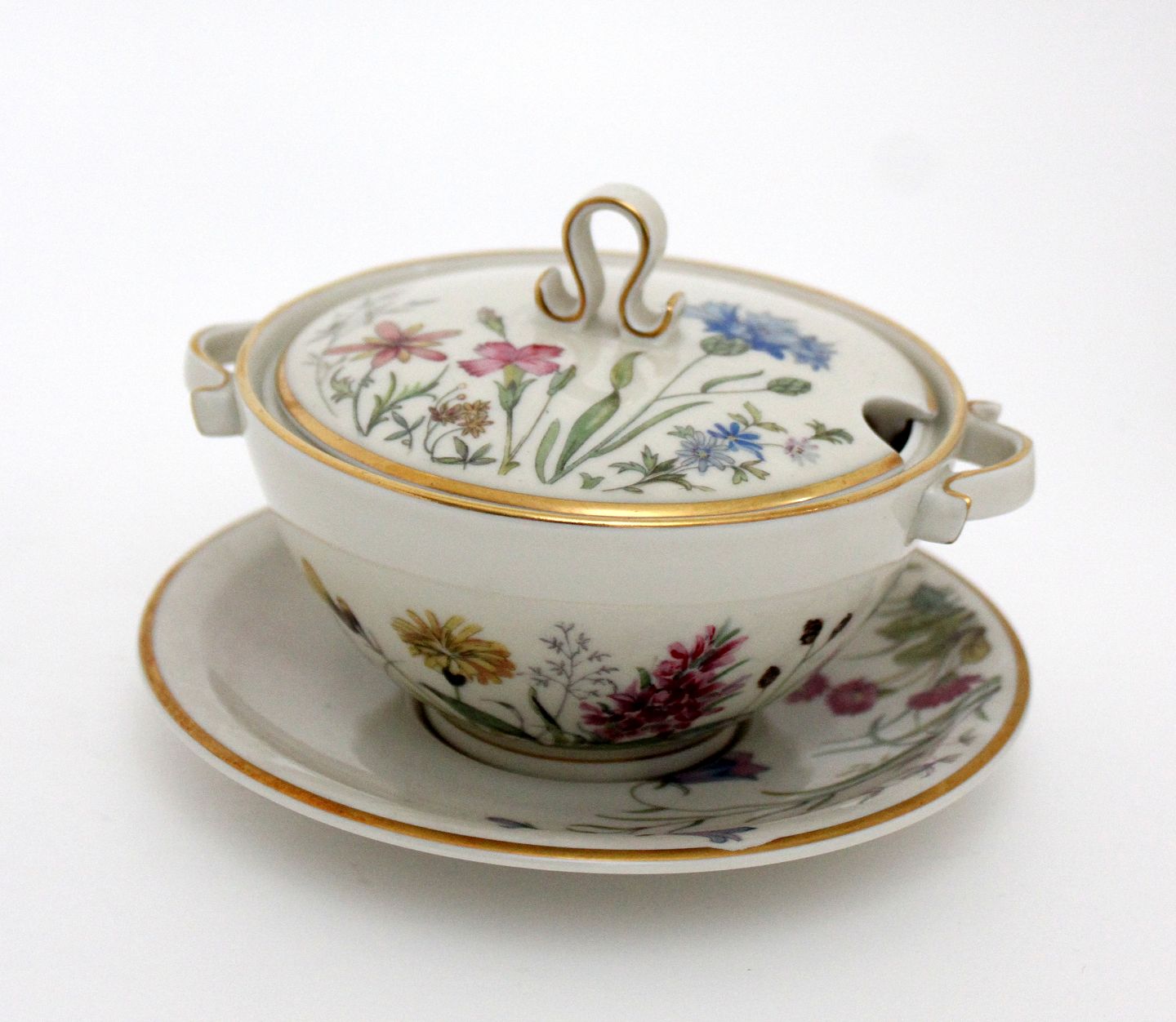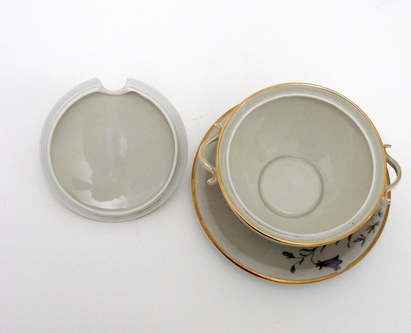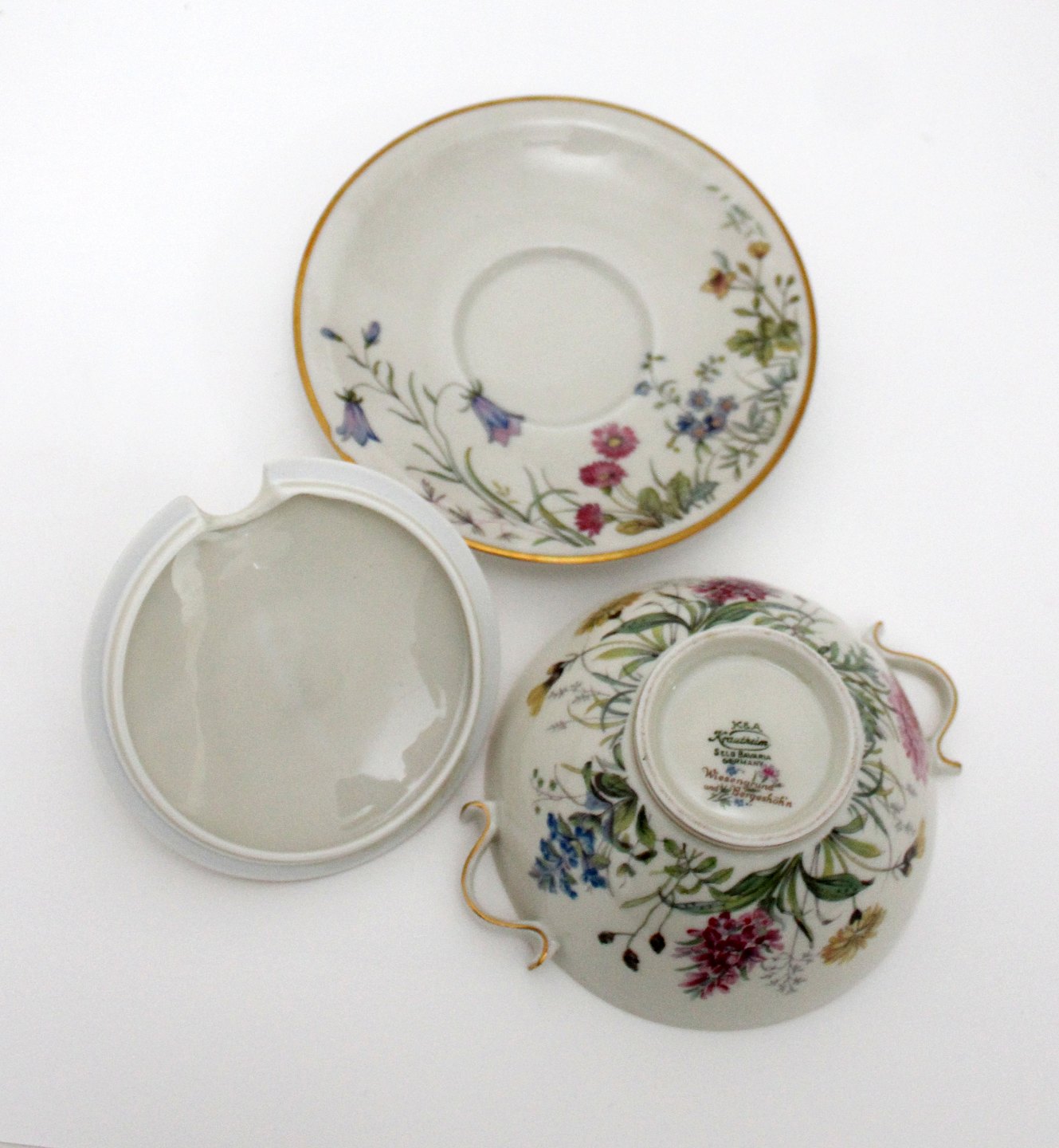 Text zugänglich auf Dänische: Krautheim, Selb Bavaria, Germany, Danmarks Flora cremet stel med guldkanter motiv Danmarks flora flere forskellige motiver.