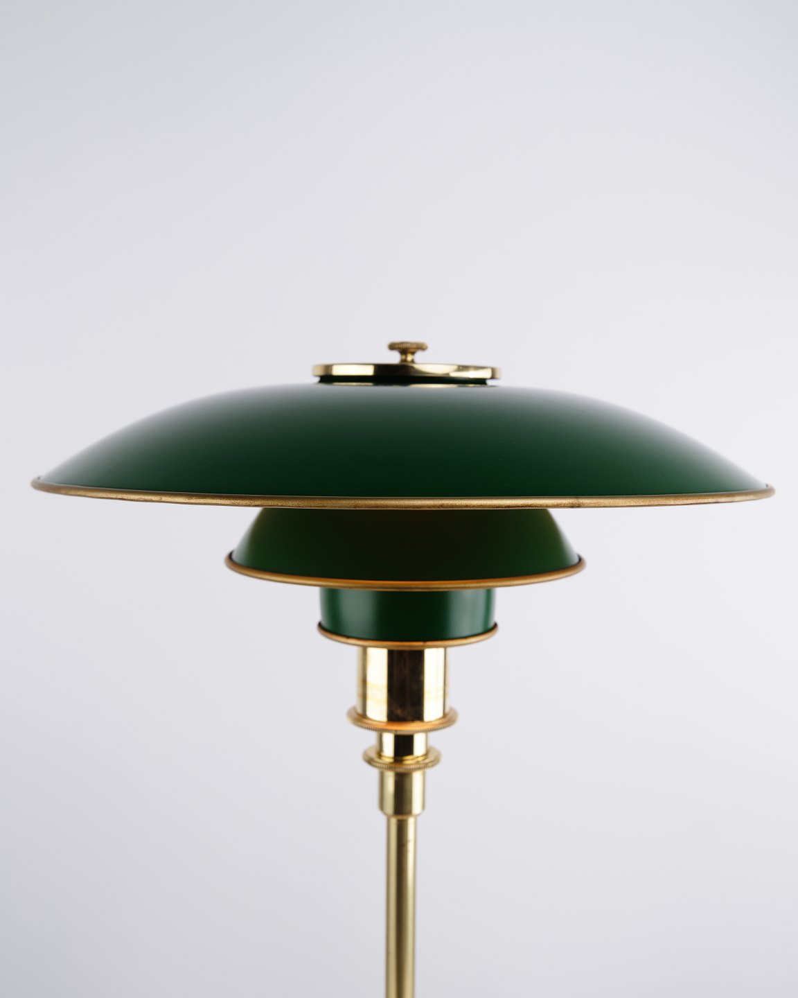 Poul Henningsen Tischlampe Modell PH 3/2 Jubiläumsausgabe aus Messing mit grünen Metallschirmen für Louis Poulsen