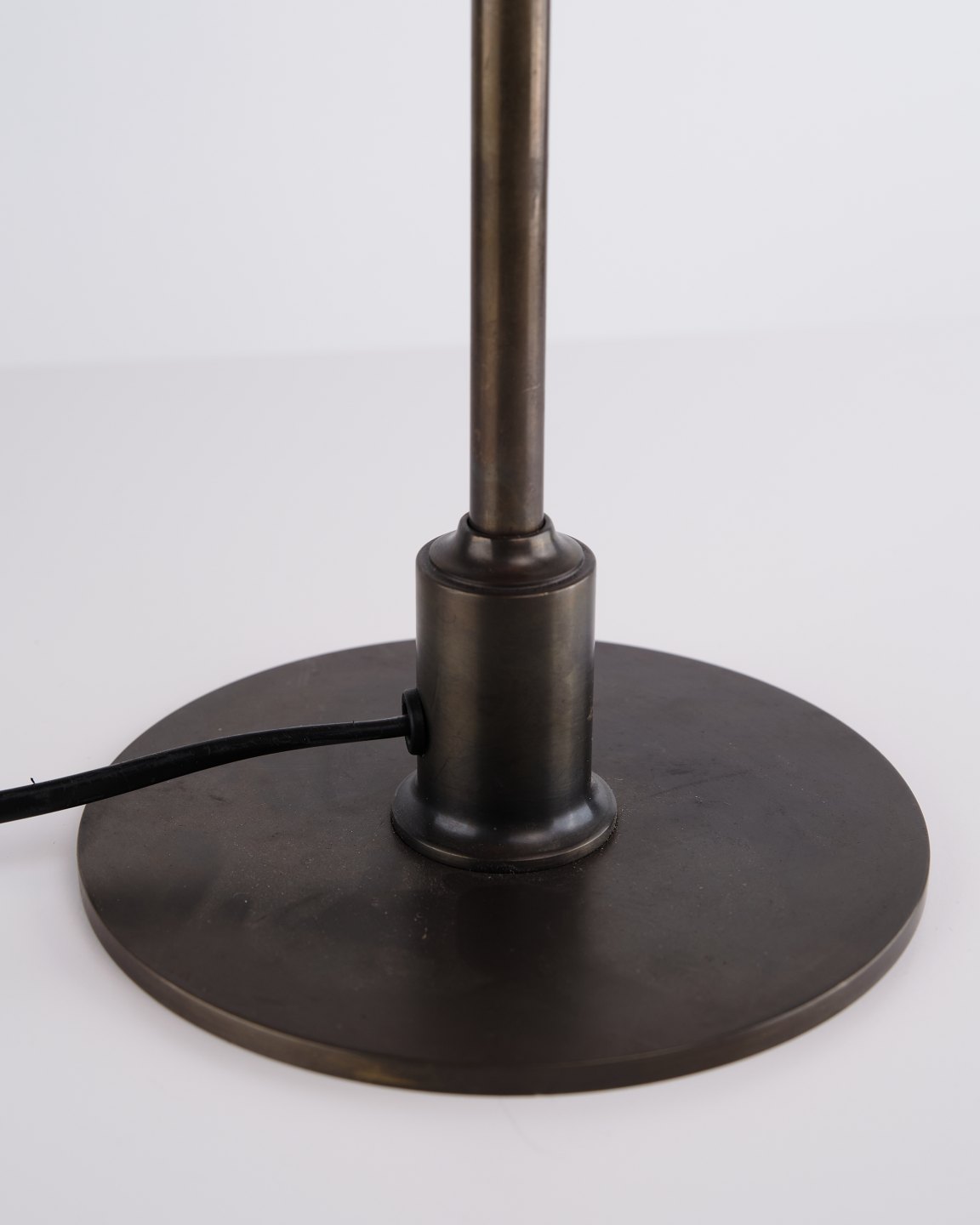 Poul Henningsen Tischlampe Modell PH 3/2 mit Kupferschirmen und Fuß aus brüniertem Messing, Louis Poulsen