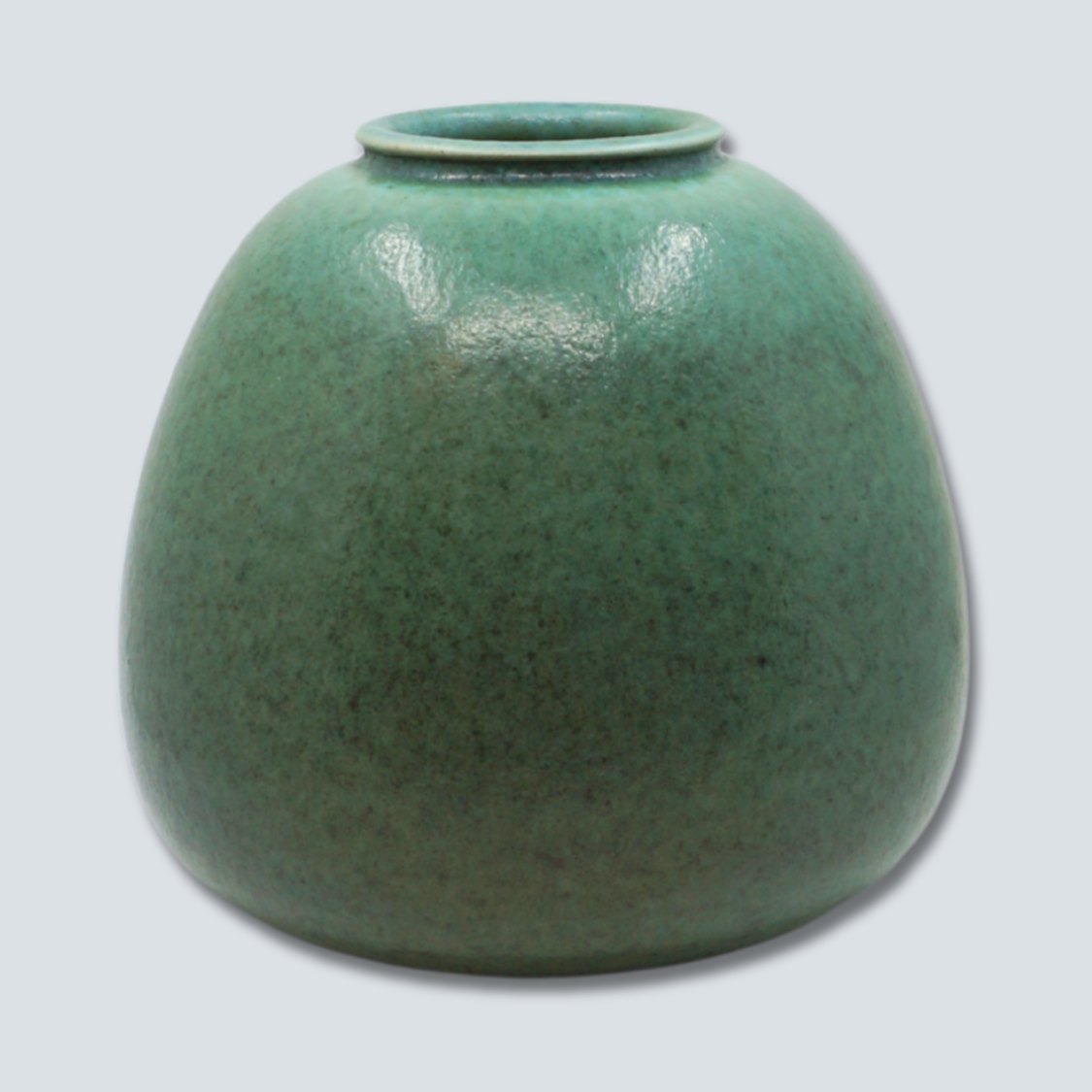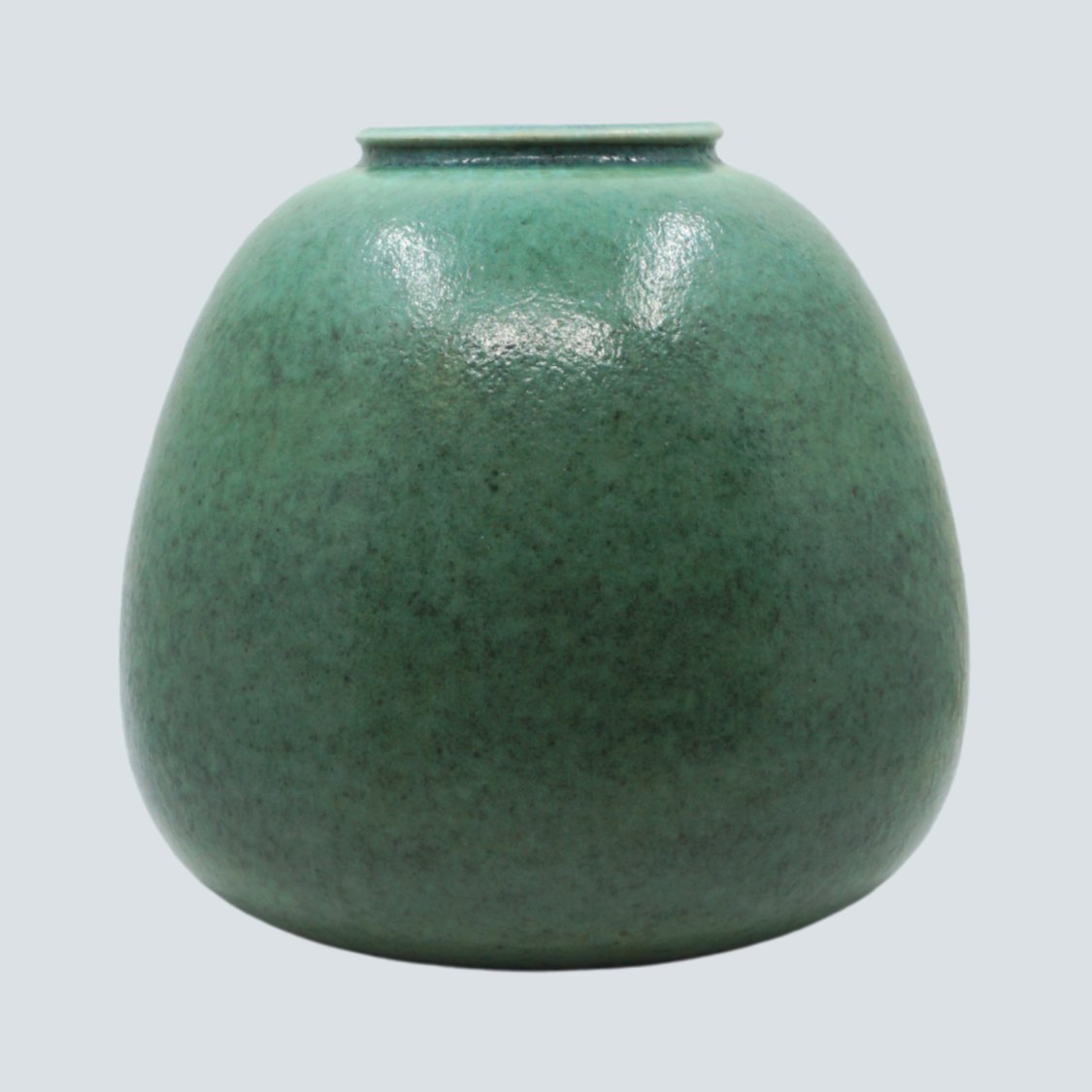 Eva Stæhr-Nielsen for Saxbo; Vase af stentøj dekoreret i en blå grøn glasur #14.