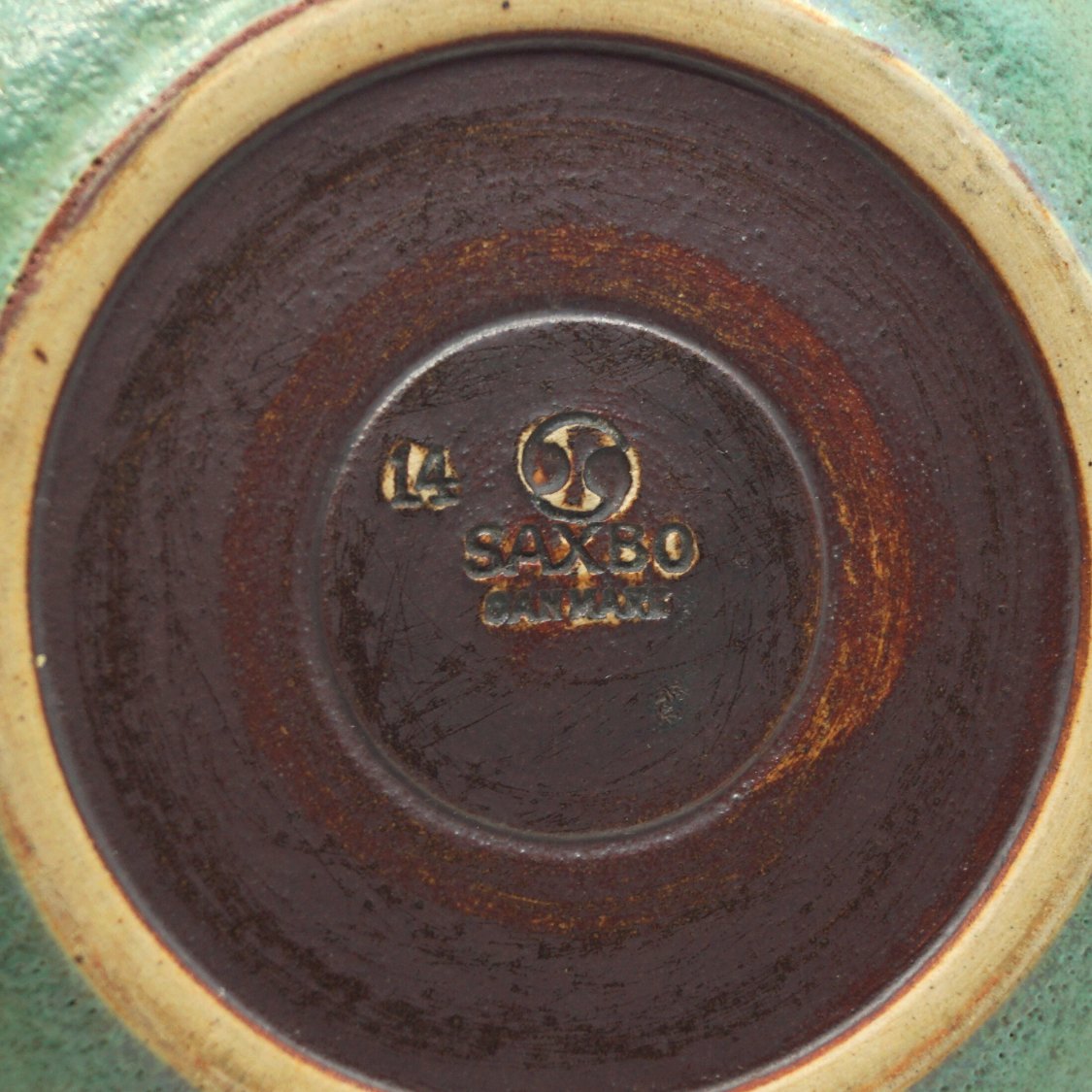 Text zugänglich auf Dänische: Saxbo, Eva Stæhr-Nielsen; Vase af stentøj dekoreret med blå grøn glasur, nr. 14