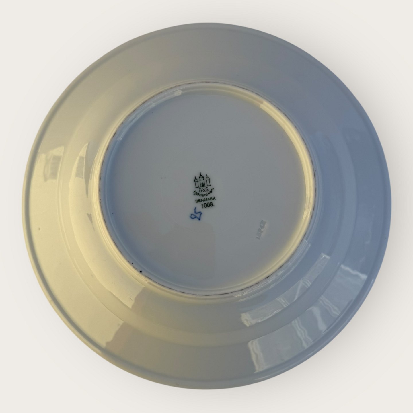 | Bing & Grondahl, blau bemalt (Musselmalet, Blue fluted), Nr. 1008, großer, tiefer Teller aus Hotelporzellan (Eisenporzellan), 25 cm Durchmesser, 1. Wahl * Guter Zustand *