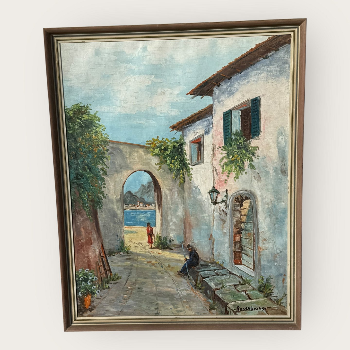 Rosenkrans, Ölgemälde auf Leinwand, Motiv aus Südeuropa, Maße mit Rahmen 88 x 71 cm