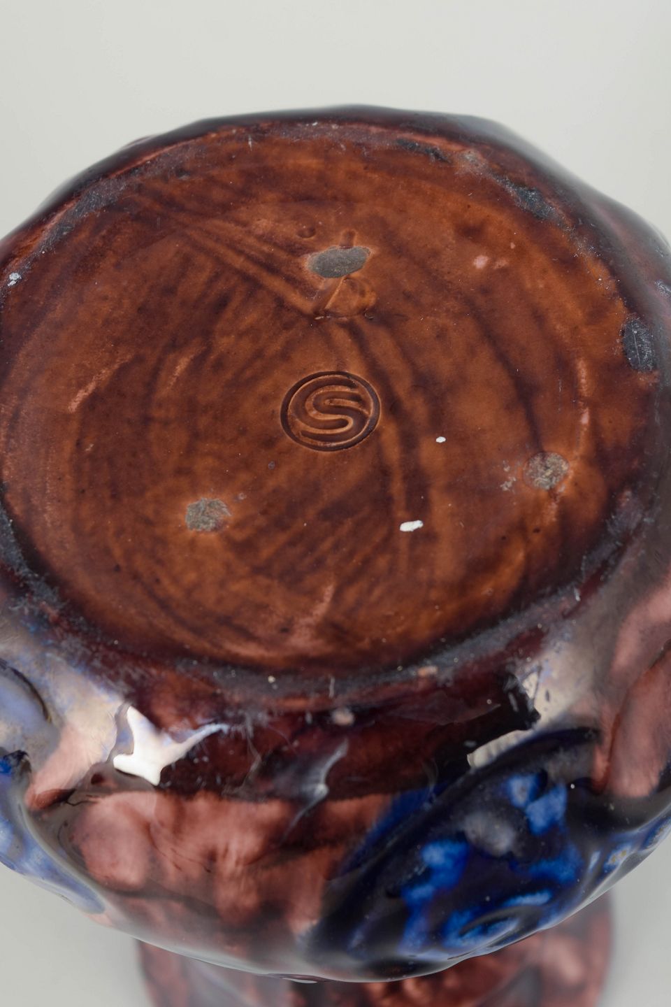 Text zugänglich auf Dänische: Roskilde Lervarefabrik, vase med bølledekoration.