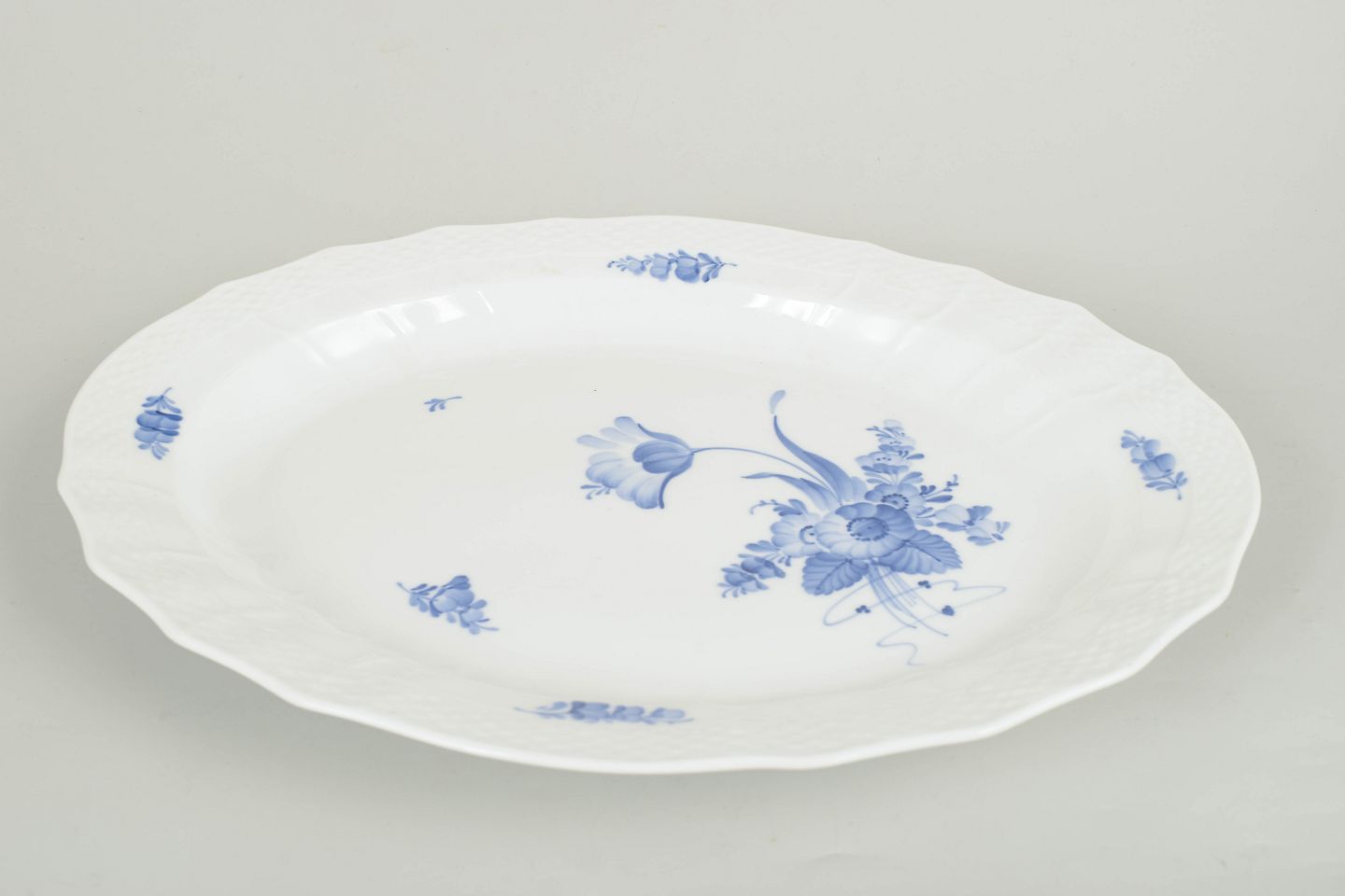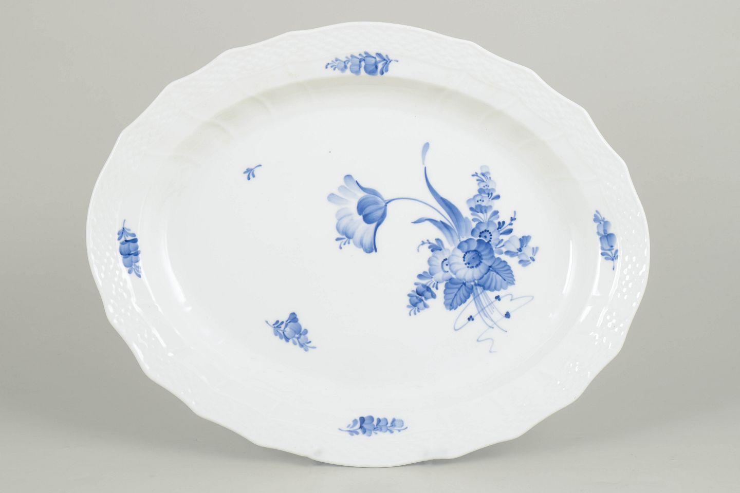 Text zugänglich auf Dänische: Royal Copenhagen, Blå Blomst Svejset ovalt serveringsfad.