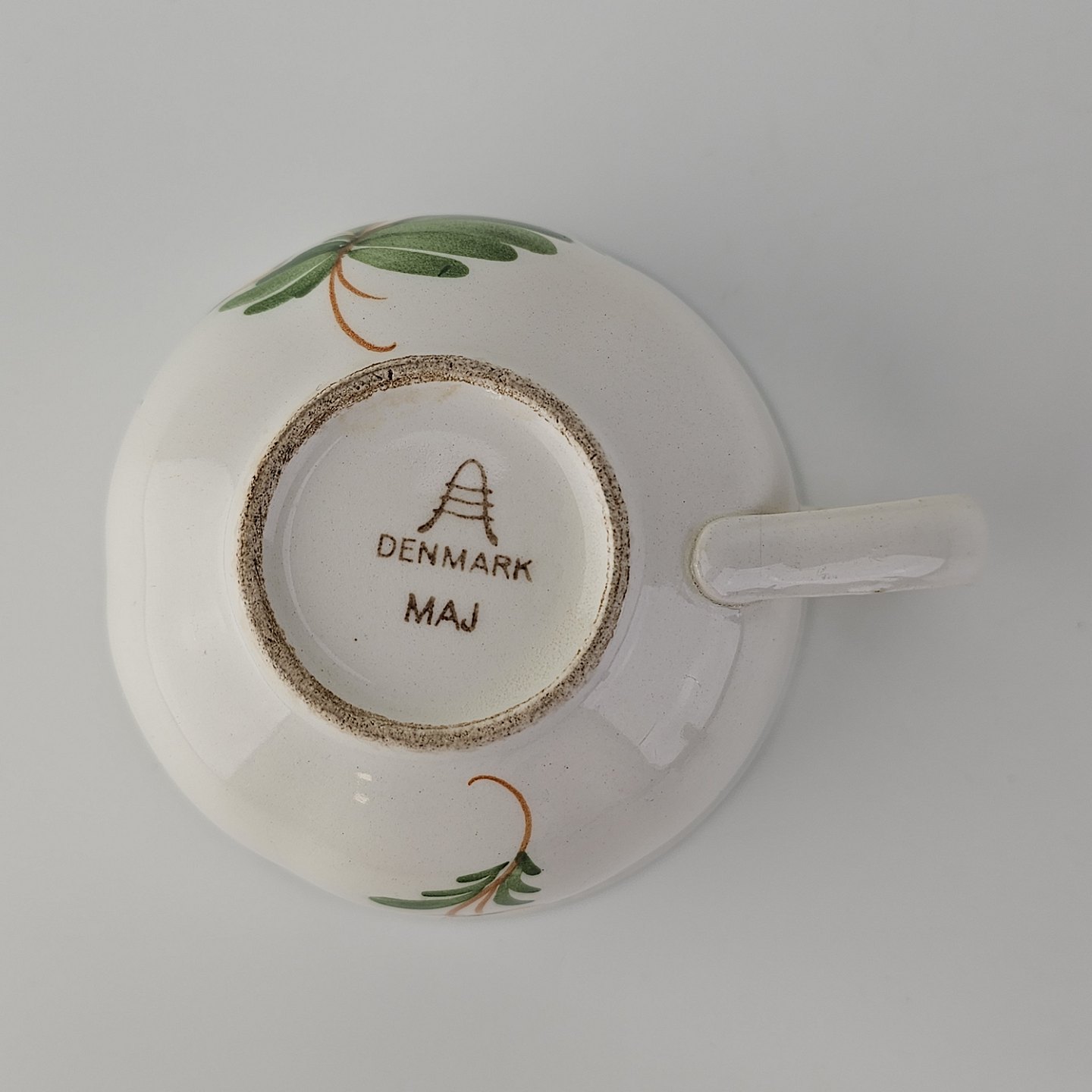 Kaffekop med underkop i fajance fra stellet Maj fremstillet i perioden 1941-1966.
