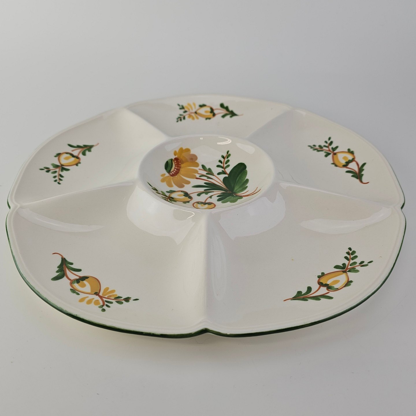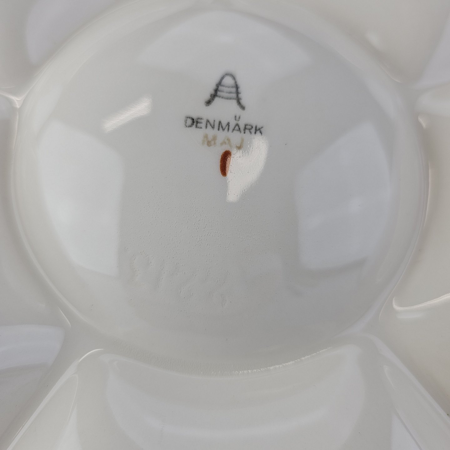 Rundt fad i fajance fra stellet Maj fremstillet i perioden 1941-1966.