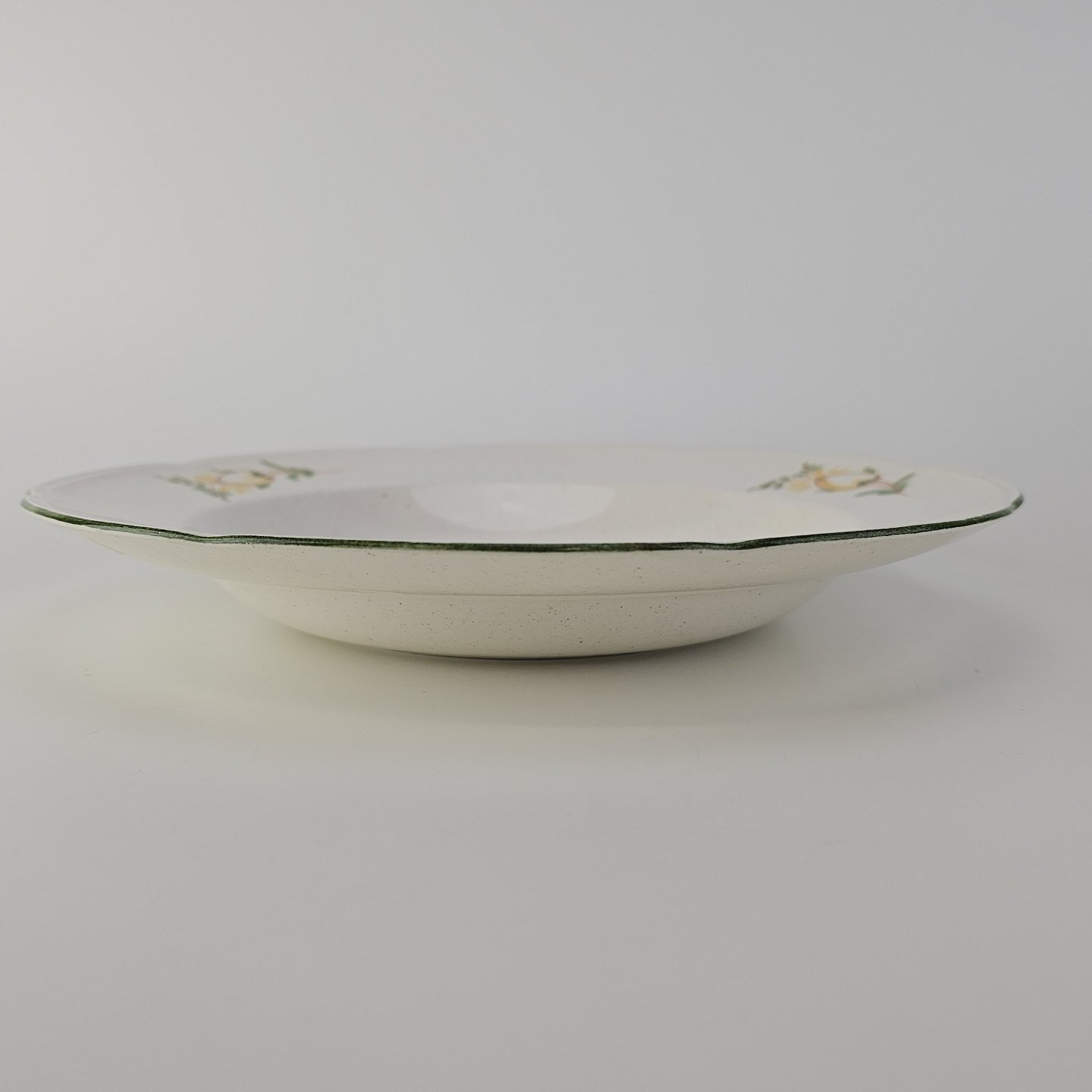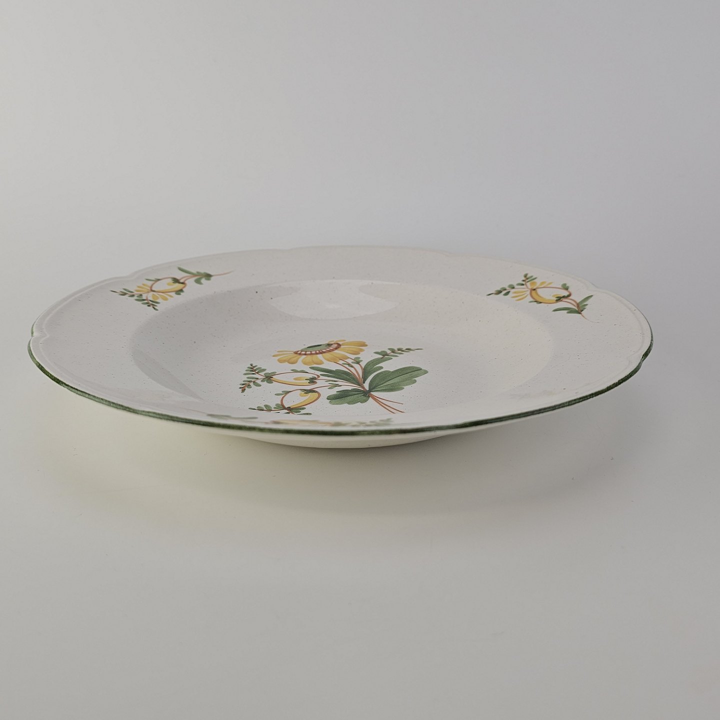 Dyb tallerken i fajance fra stellet Maj fremstillet i perioden 1941-1966.