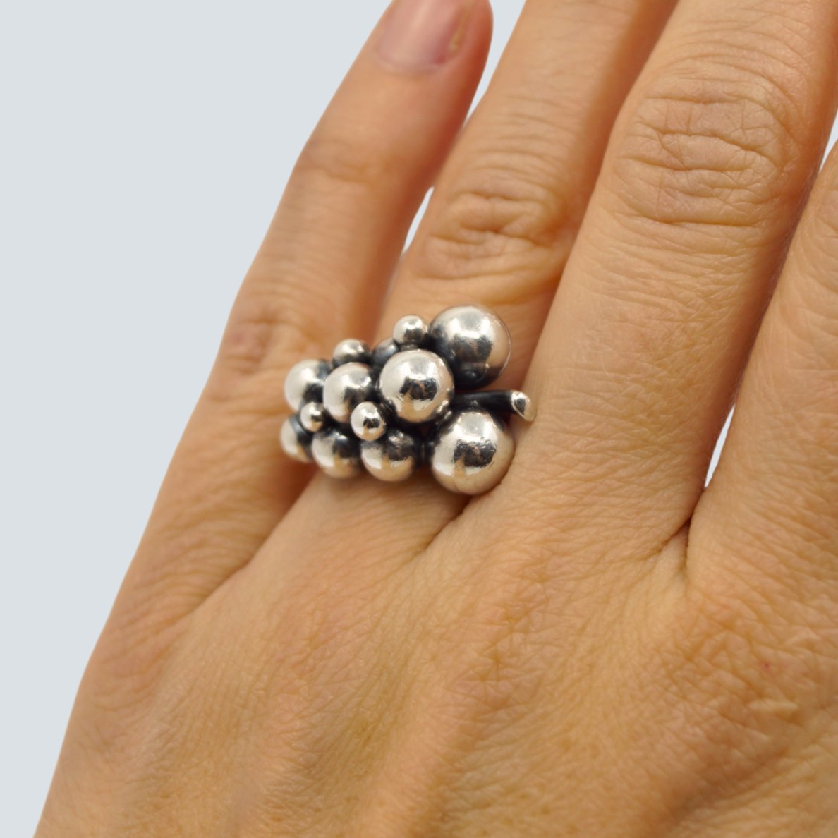 Georg Jensen; Moonlight Grapes ring i sterlingsølv
