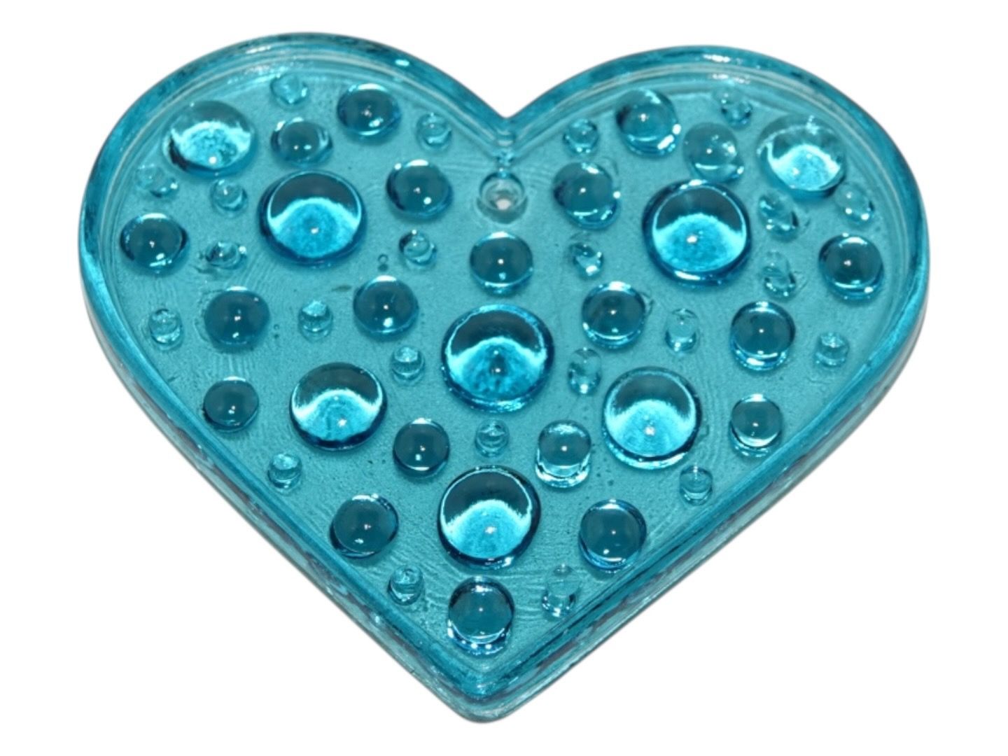 Glasværk fra Sverige, solfanger i form af lyseblåt hjerte fra 1970'erne eller 1980'erne.