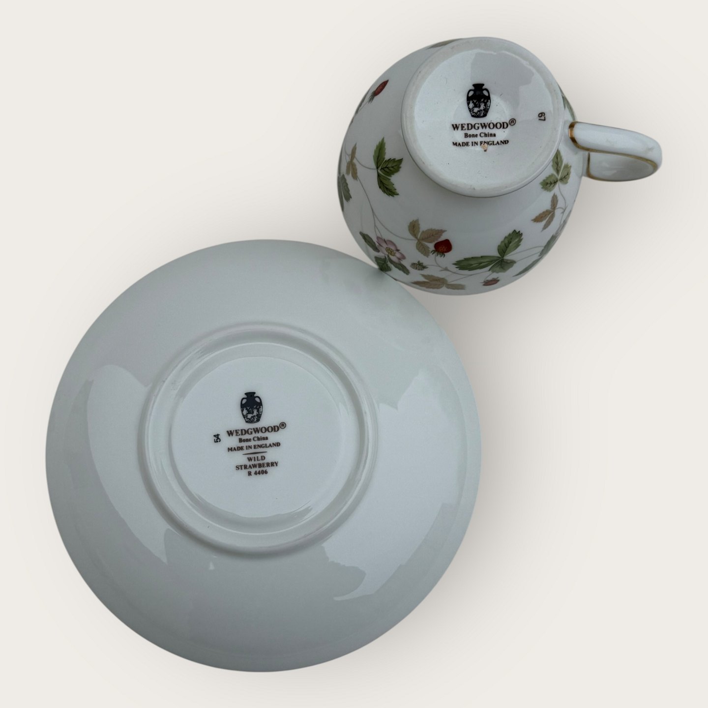 | Wedgwood, Walderdbeere / Wild Strawberry, Tasse mit Untertasse, Tassenmaße: Höhe 6,5 cm, Durchmesser 8,2 cm *Perfekter Zustand*