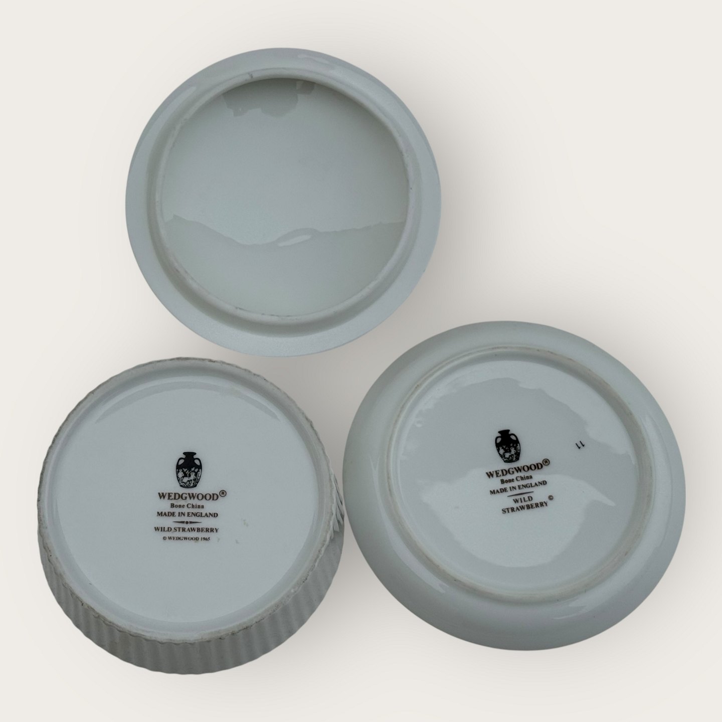 Wedgwood, Walderdbeere / Wild Strawberry, kleine Schale mit Deckel und Untertasse, Durchmesser Schale 9 cm *Perfekter Zustand*