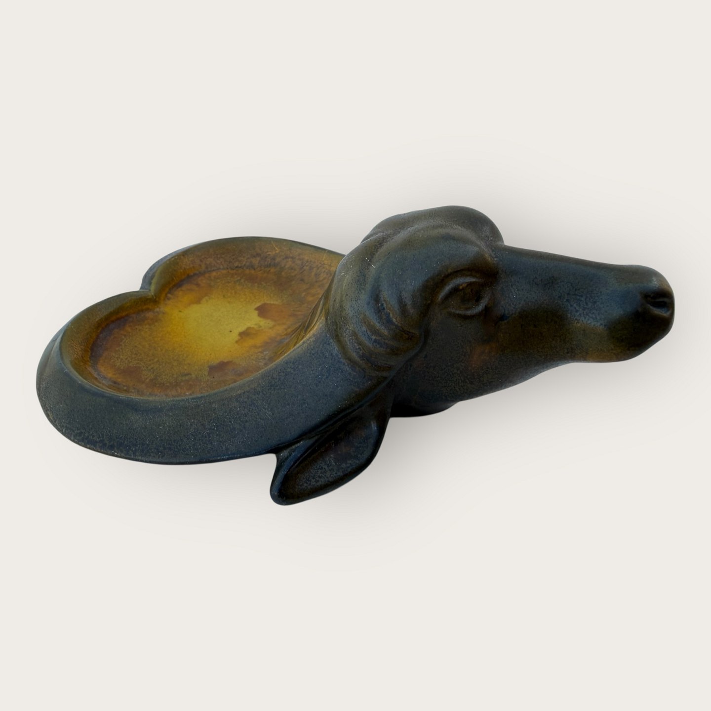 | P. Ipsen / Ipsens Witwe, Schale mit Wasserbüffel, Maße: 17 x 13 cm, signiert: P. Ipsen, Kopenhagen, 128 *Guter Zustand*