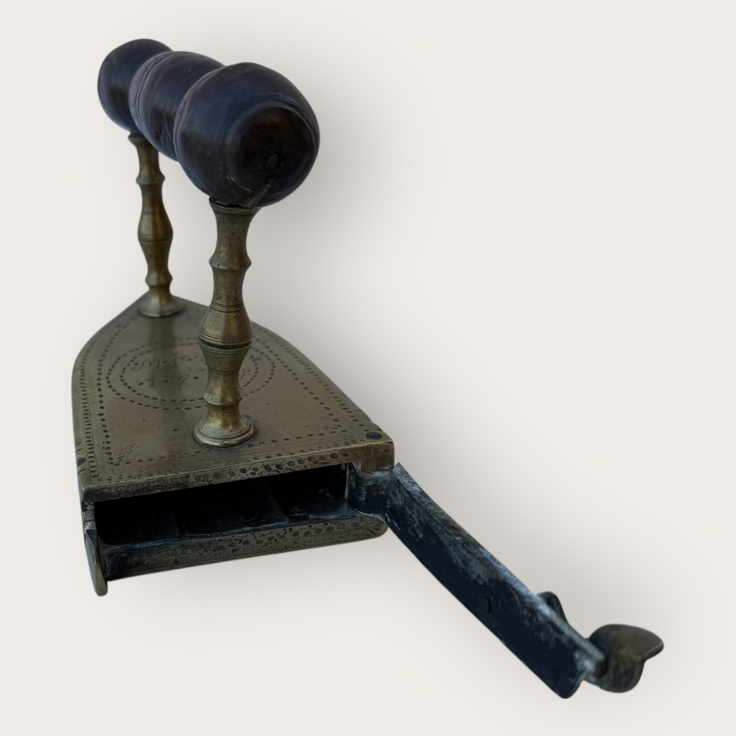 Messing, mit den Initialen des Besitzers und der Jahreszahl 1784 gekennzeichnet. Maße ca.: H x B x T 11 x 14 x 8 cm. *Guter gebrauchter Zustand*
