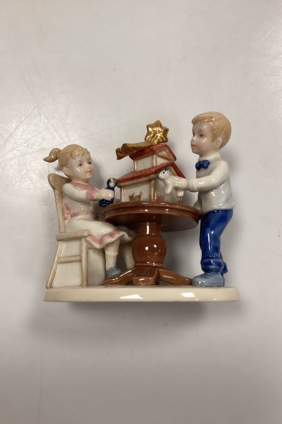 Royal Copenhagen Jule Figur - Dreng og Pige med Krybbespil No. 294. Designet af Sven Vestergaard.