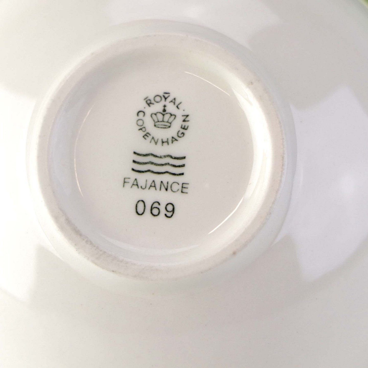 Lille morgenkop i fajance med grøn underkop fra stellet 4 All seasons nr. 069 og 073