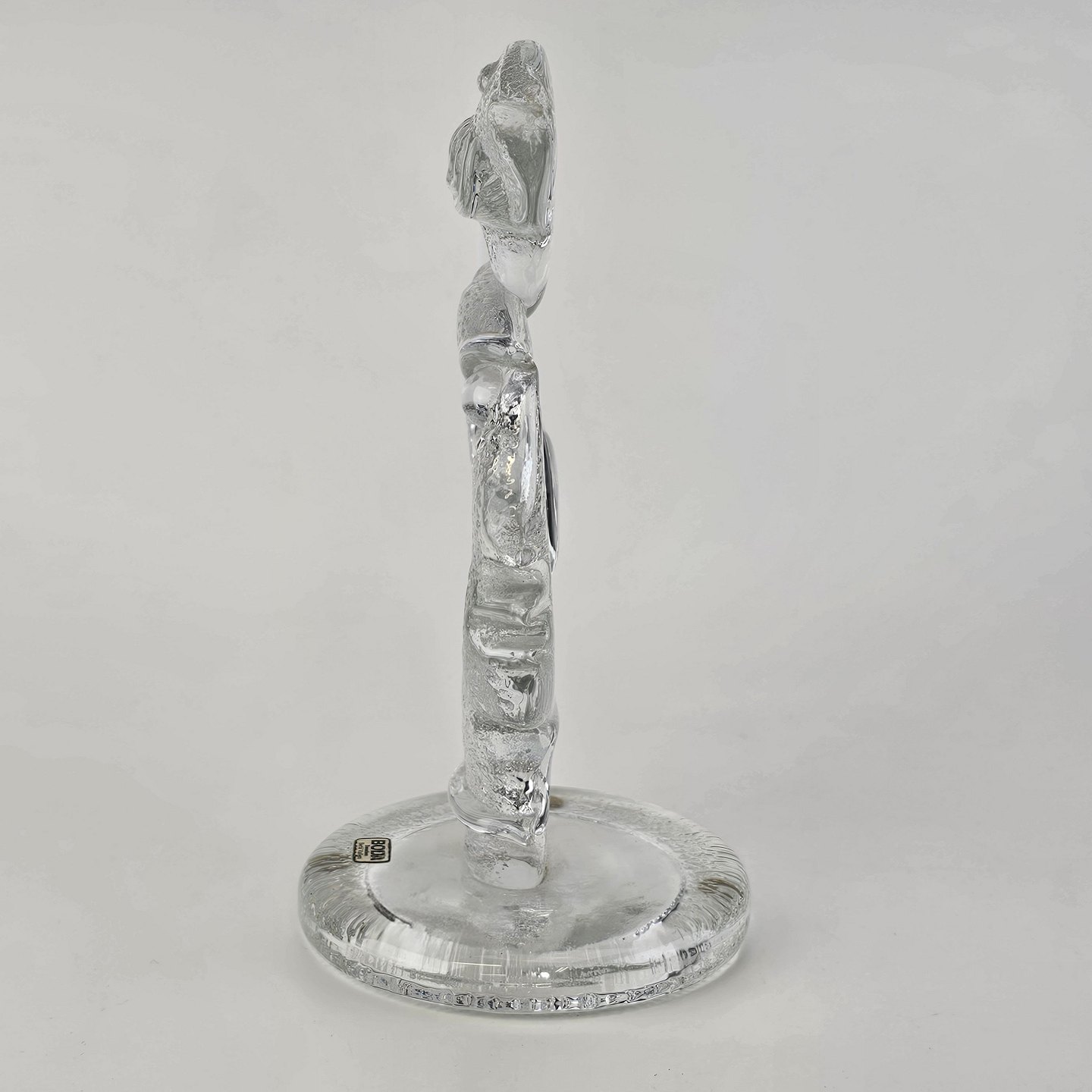 Skulptur i glas med motiv af et menneske i profil, en fugl og et hjerte