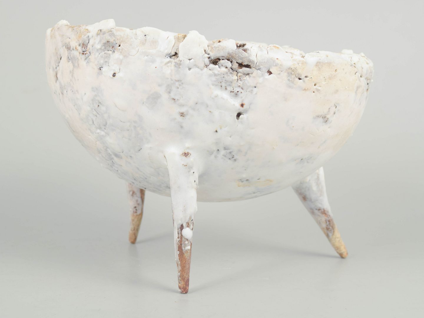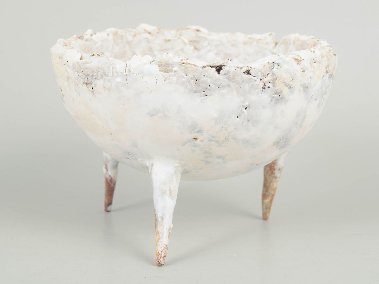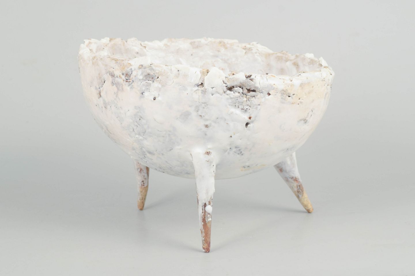 Unika Skål i genbrugt stentøjsler på tre spidse ben.