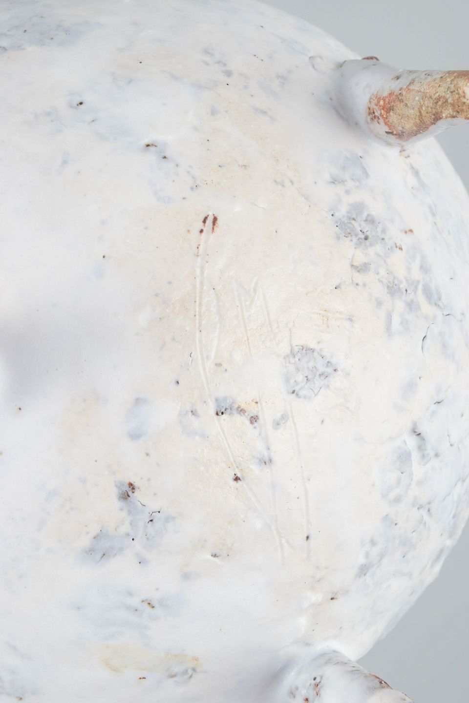 Unika Skål i genbrugt stentøjsler på tre spidse ben. Delvist glaseret fremstår den med det gyldne, brune og hvide områder. De brune områder er ler fra Danmark.