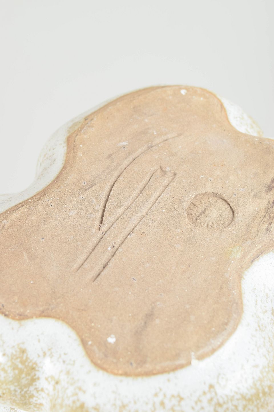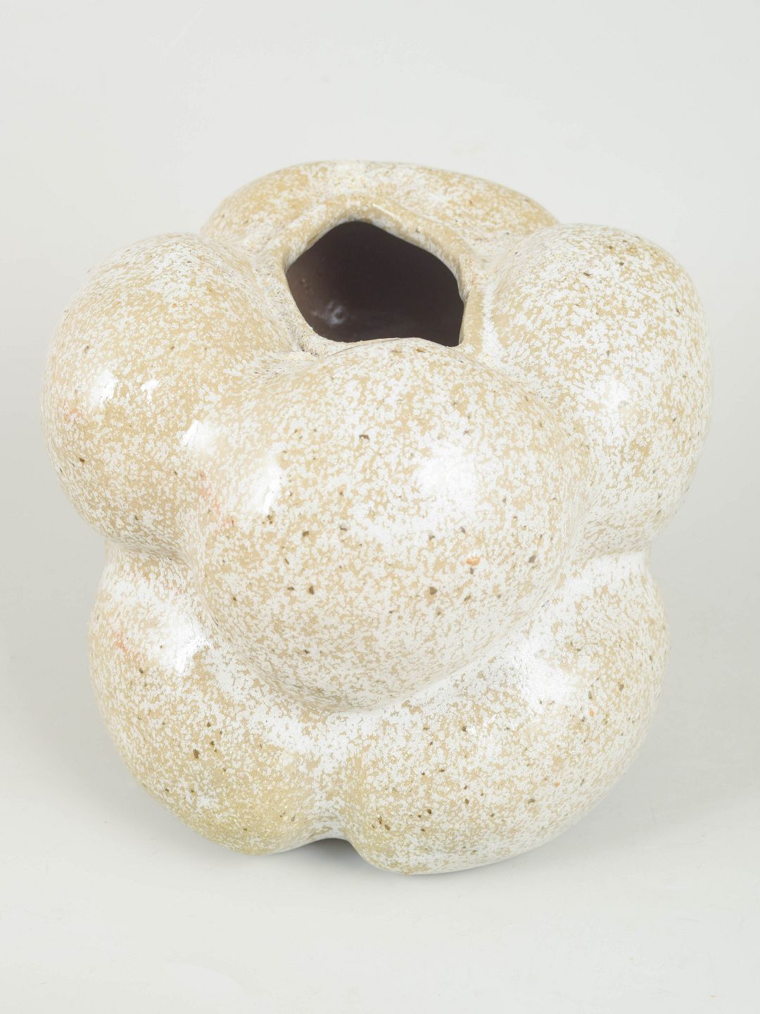 Unika stentøjsskulptur, organisk formet. Glasuren der dækker vasen er snowflake glasur, en glasur der er klar med bittesmå hvide krystaller der minder om snefnug.
