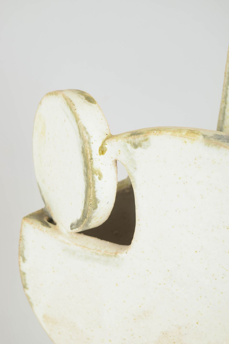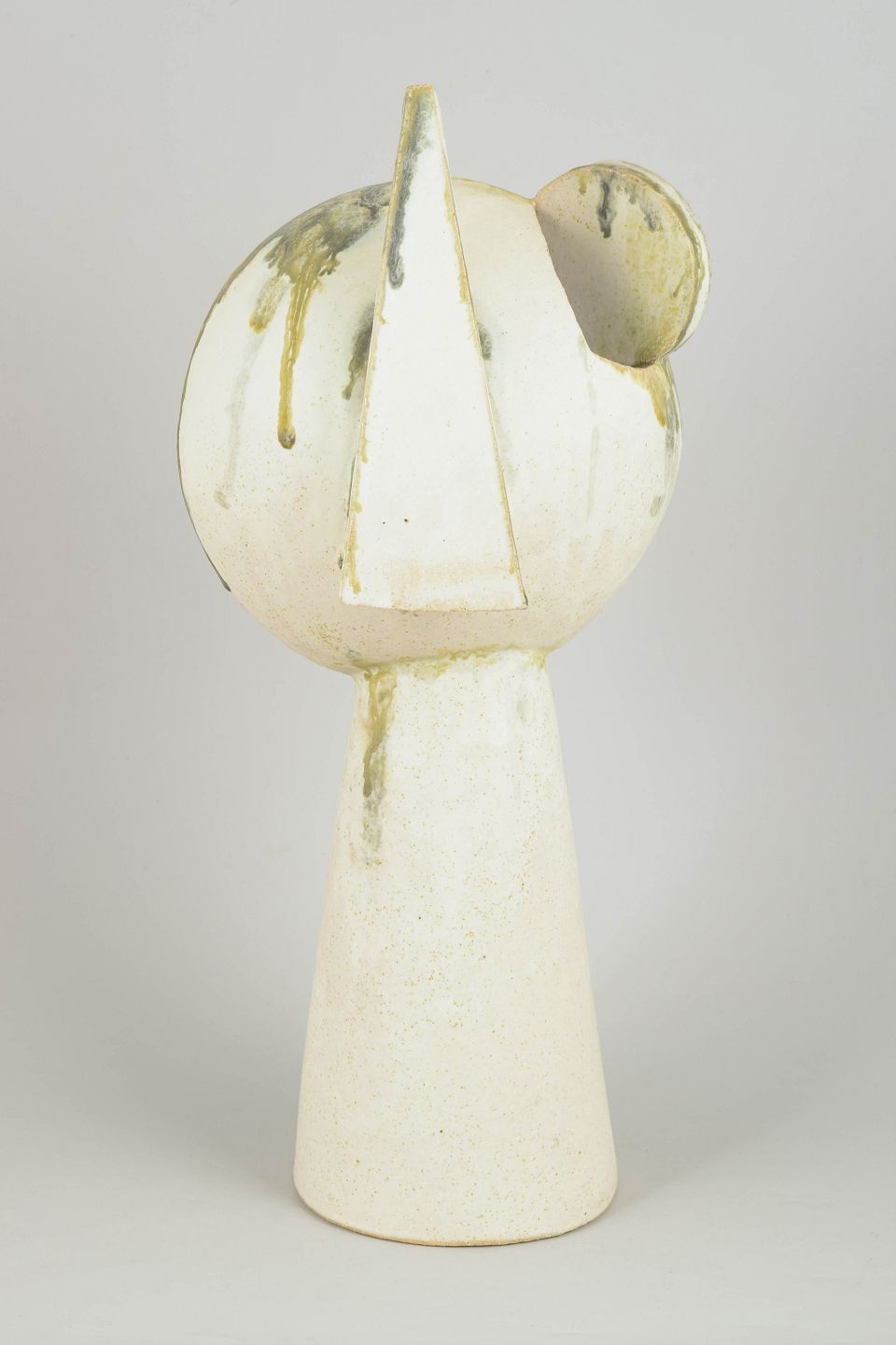 Christina Muff, dansk samtidskeramiker (f. 1971). Stort kubistisk unika ansigt med cremehvid mat glasur og farvede glasurløbere. "The art of being extravagant" from the kilnfolk series.