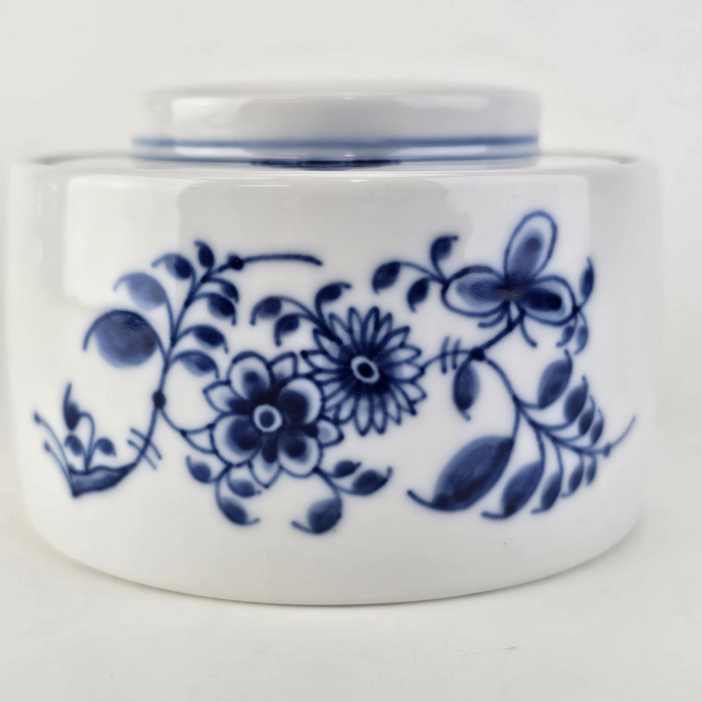 Lågkrukke i kongeligt hvidt porcelæn med musselmalet dekoration