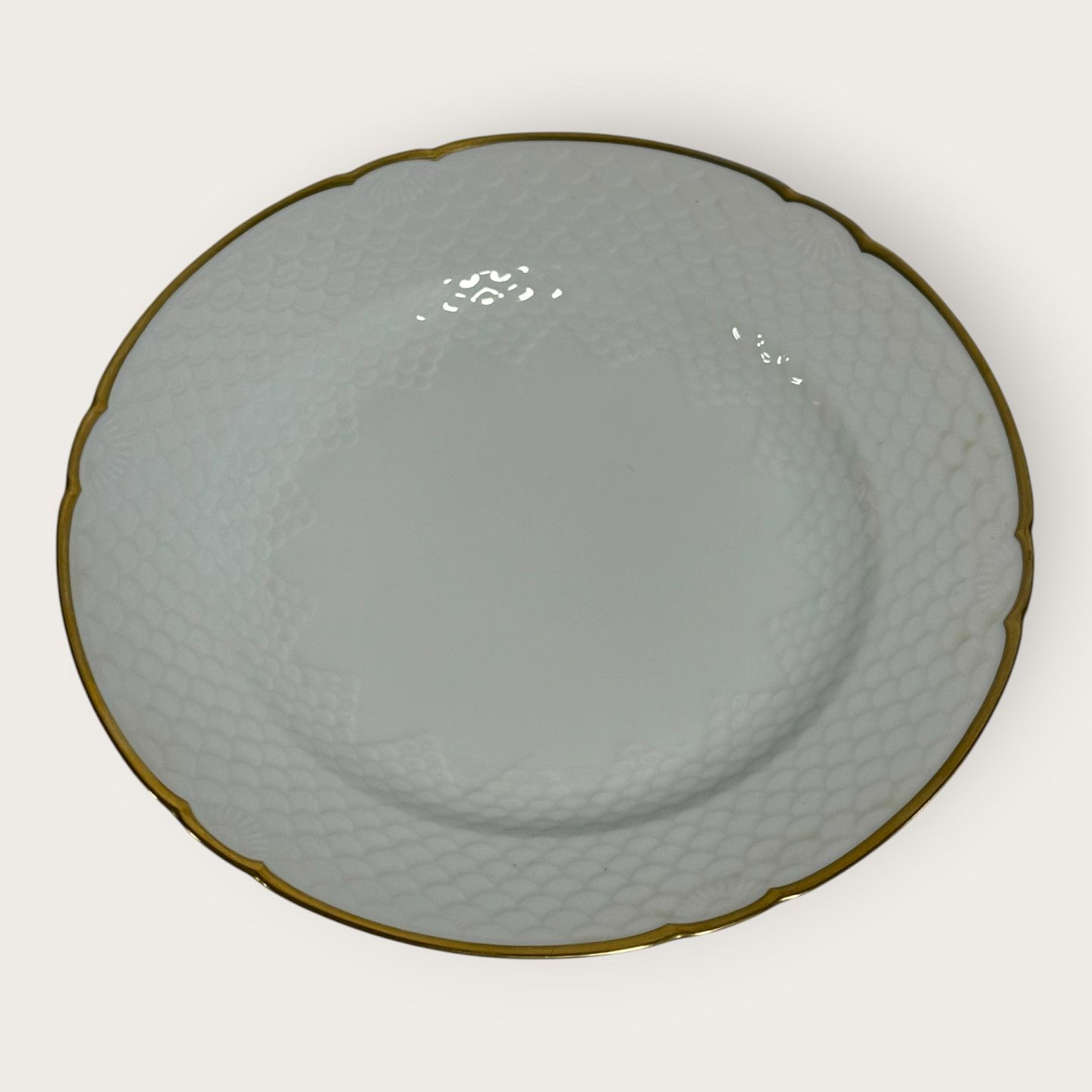 | Bing & Grondahl, Aakjær, Weißes Porzellan mit Goldrand, Speiseteller Nr. 25, 24,5 cm Durchmesser, 1. Wahl *Guter Zustand*