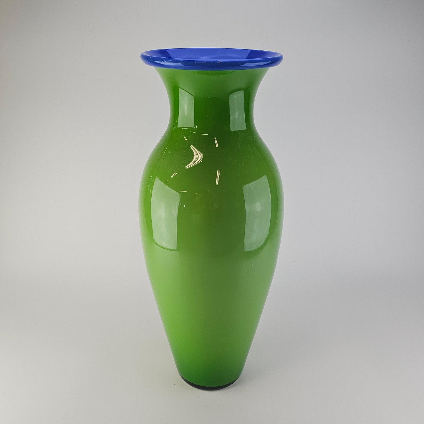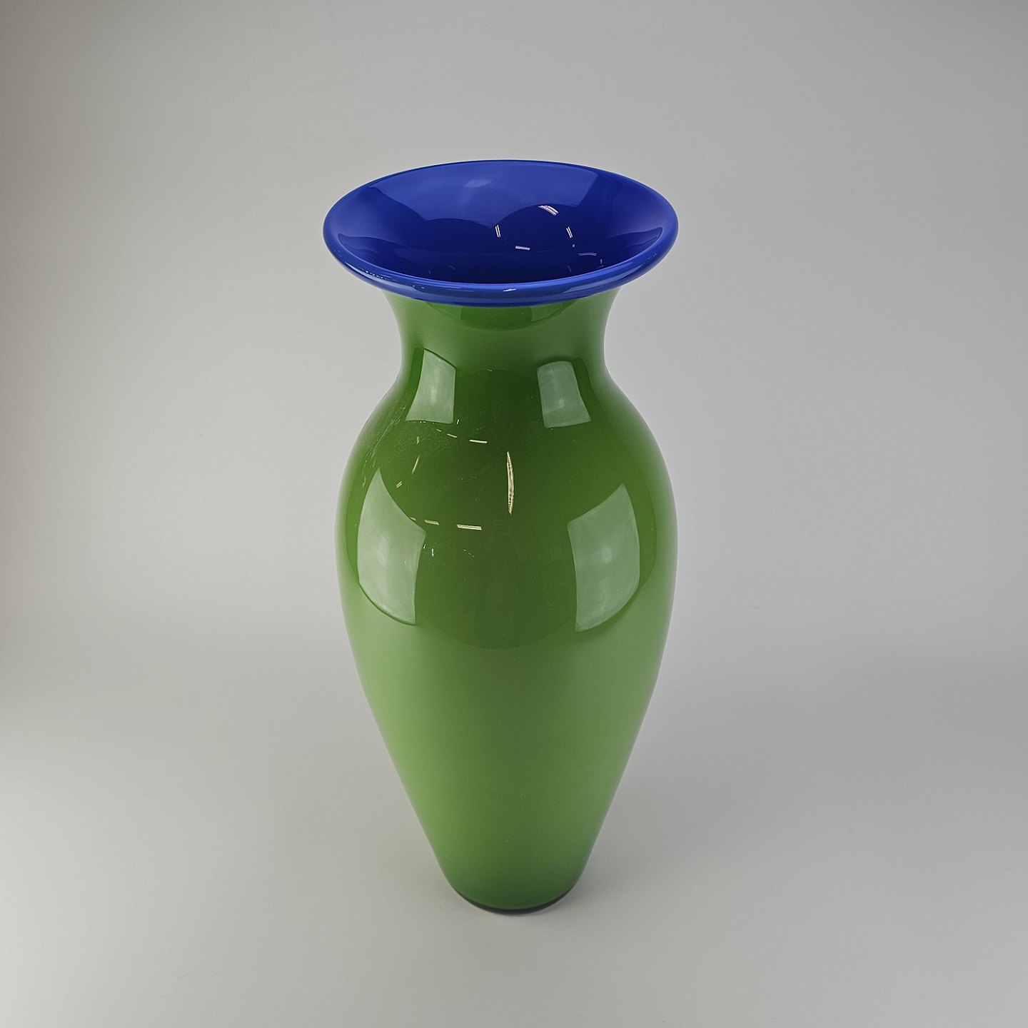 Isis vase i glas med grøn yderside og blå inderside
