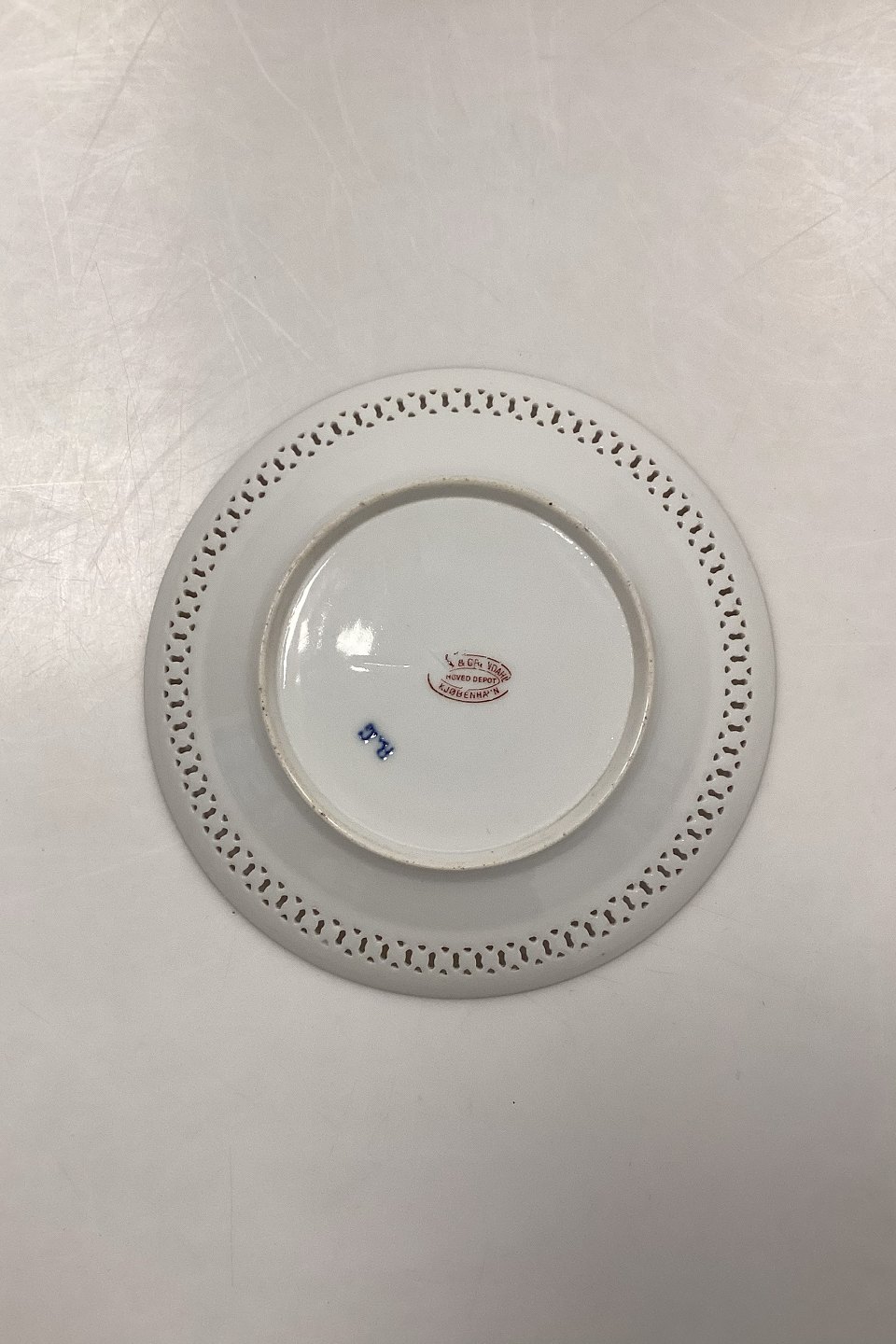 Bing og Grøndahl Art Nouveau tallerken med gennembrudt kant og Hoveddepot mærke