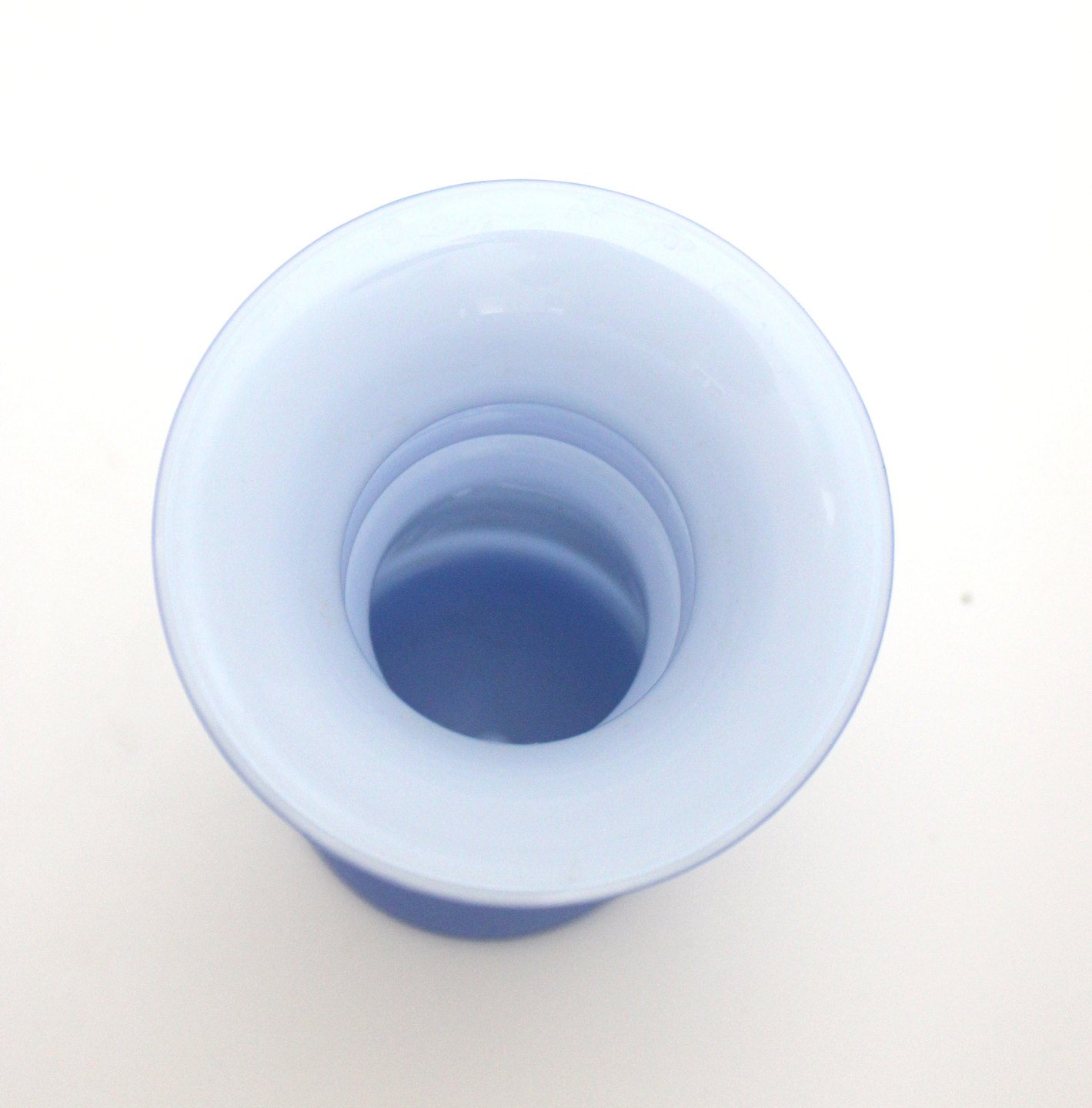 Text zugänglich auf Dänische: Holmegaard, Harmony, Støvblå vase opalhvid indvendig. Designet af Michael Bang i 1989. Højde 16 cm. Øverste diameter 9,5 cm. Fin stand. Pris: 275 kr. stk. Lager: 1