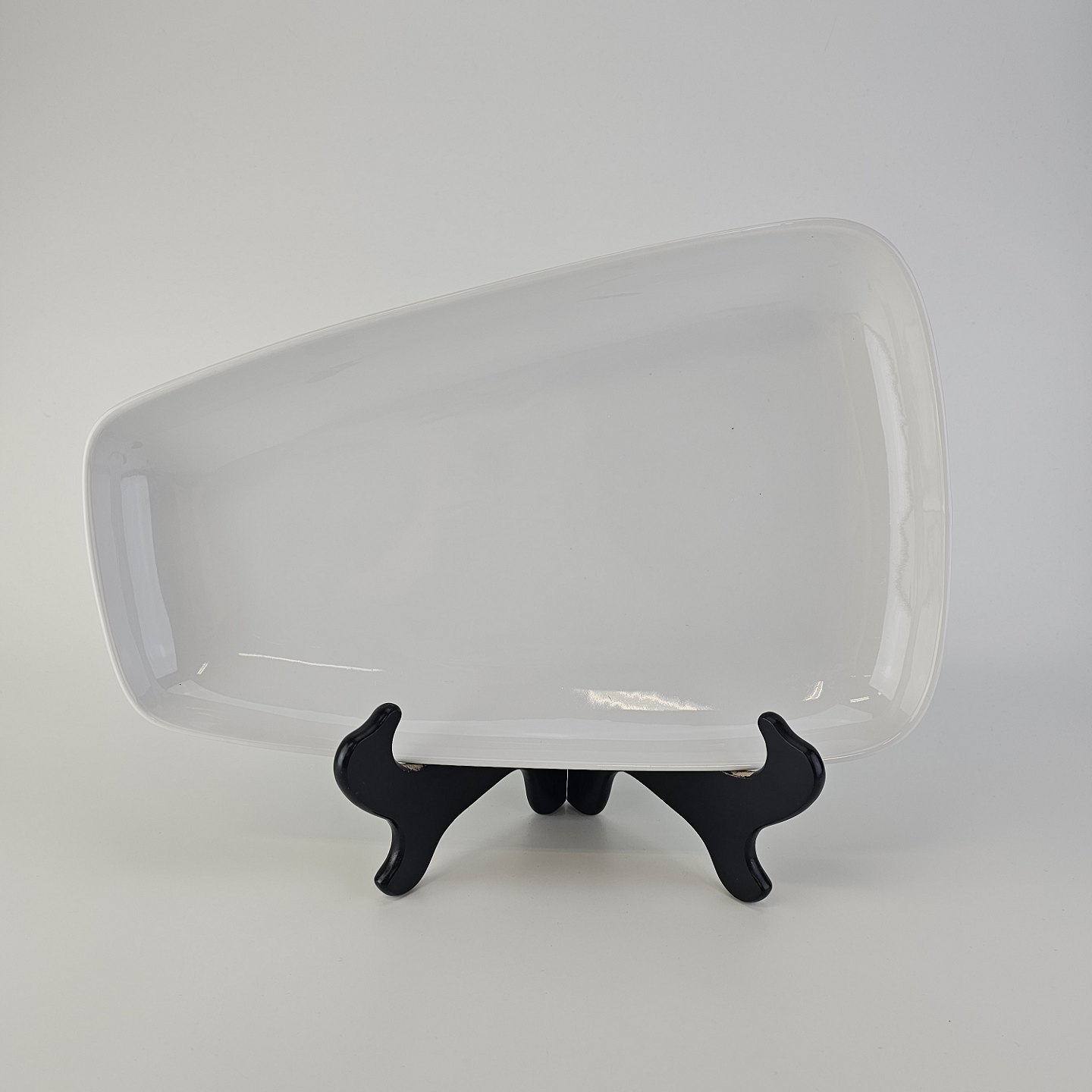 Asymmetrisk aflangt fad i porcelæn fra Stellet Danild 30, også kaldet Blomsterknop