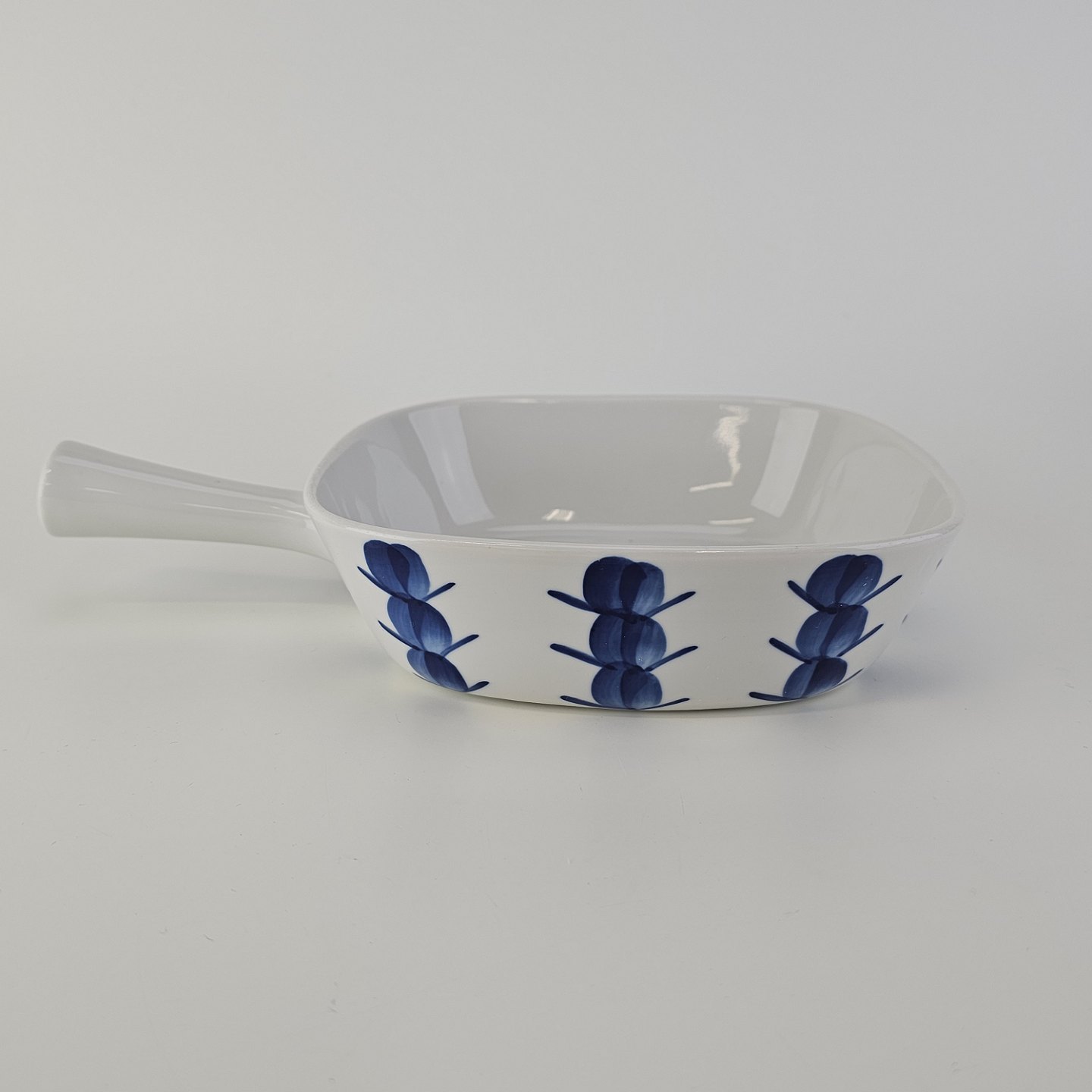 Skål med håndtag i porcelæn fra Stellet Danild 30, også kaldet Blomsterknop