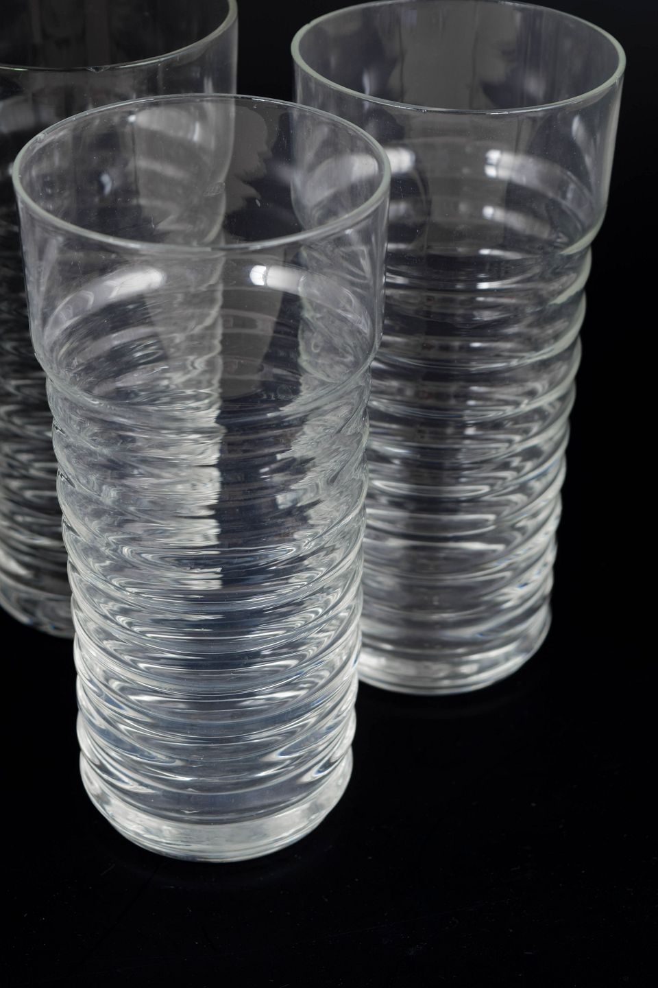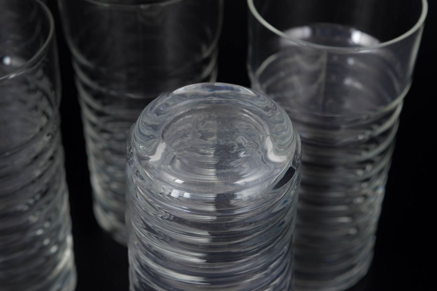Klar glas i Perpetum Mobile serien med karakteristisk rillet struktur og cylindrisk form.