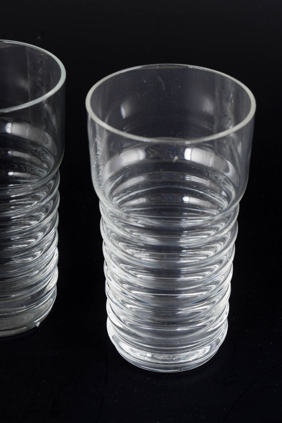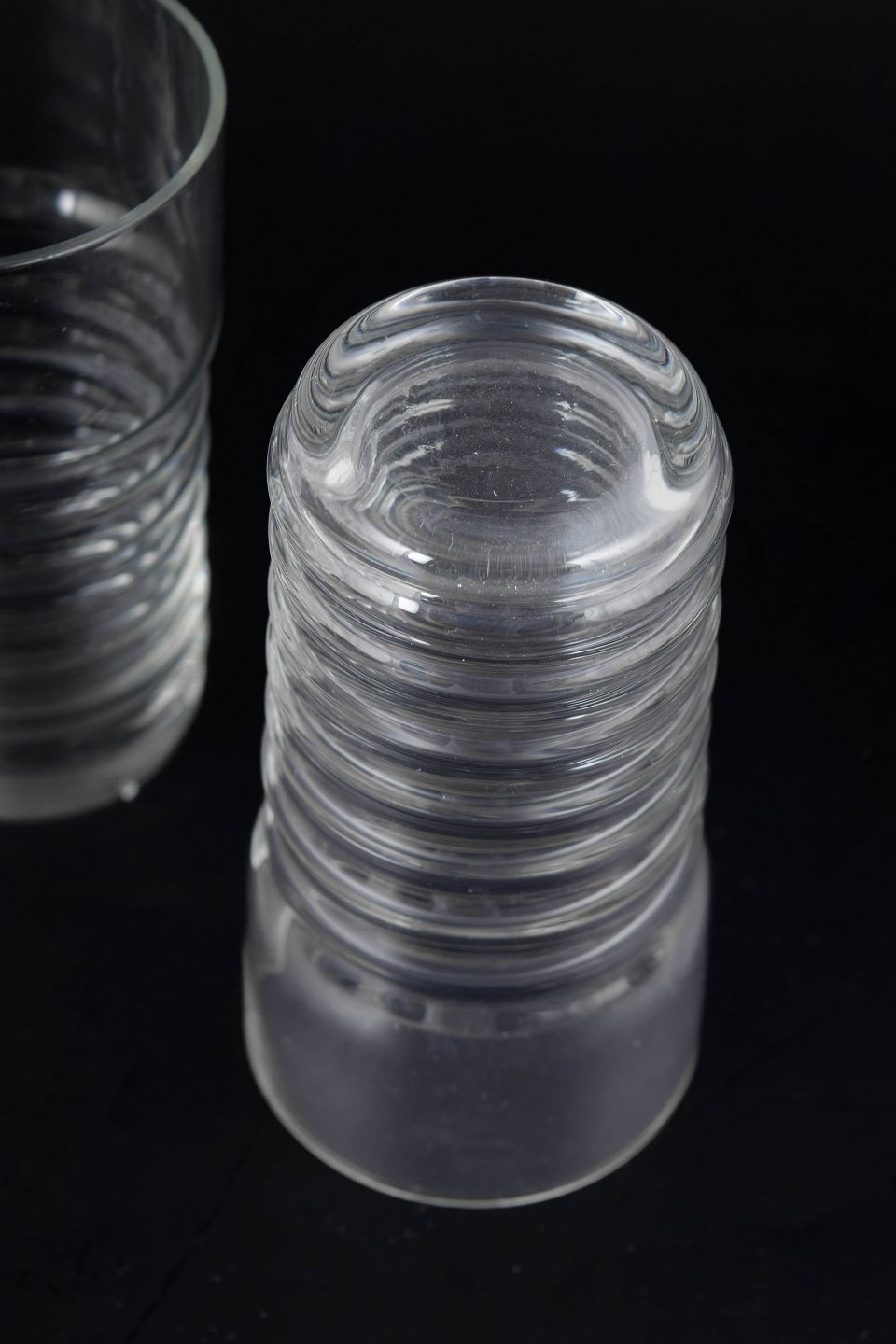 Klar glas i Perpetum Mobile serien med karakteristisk rillet struktur og cylindrisk form.