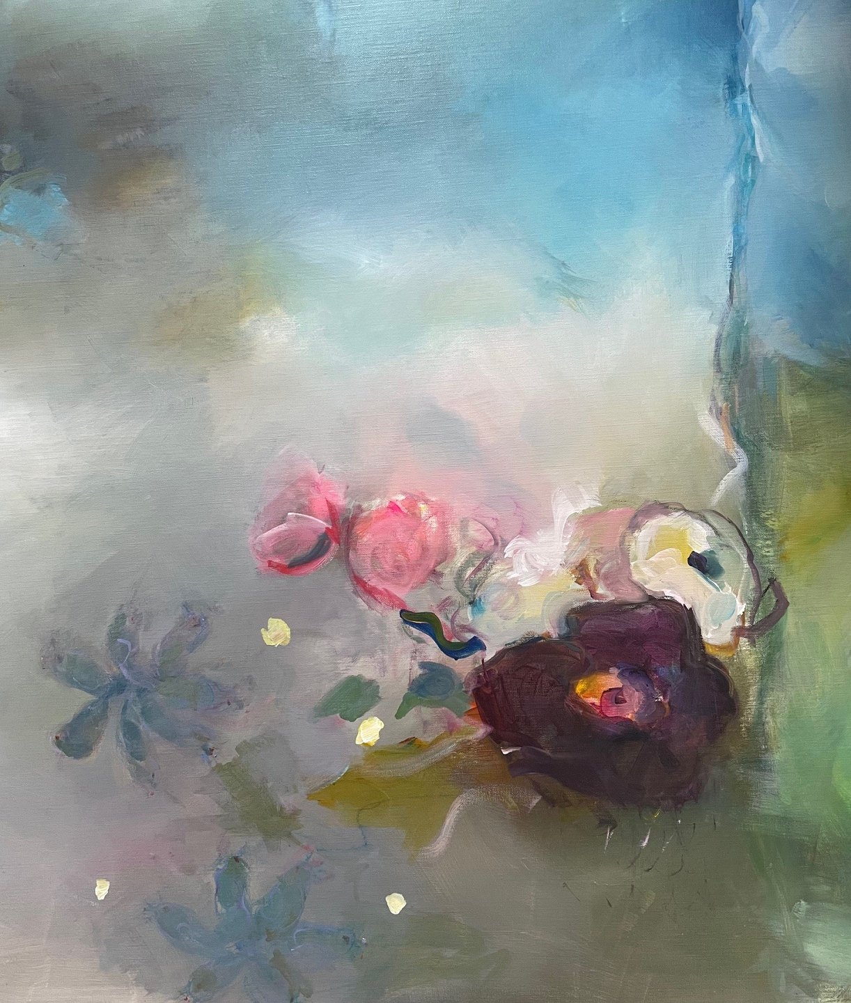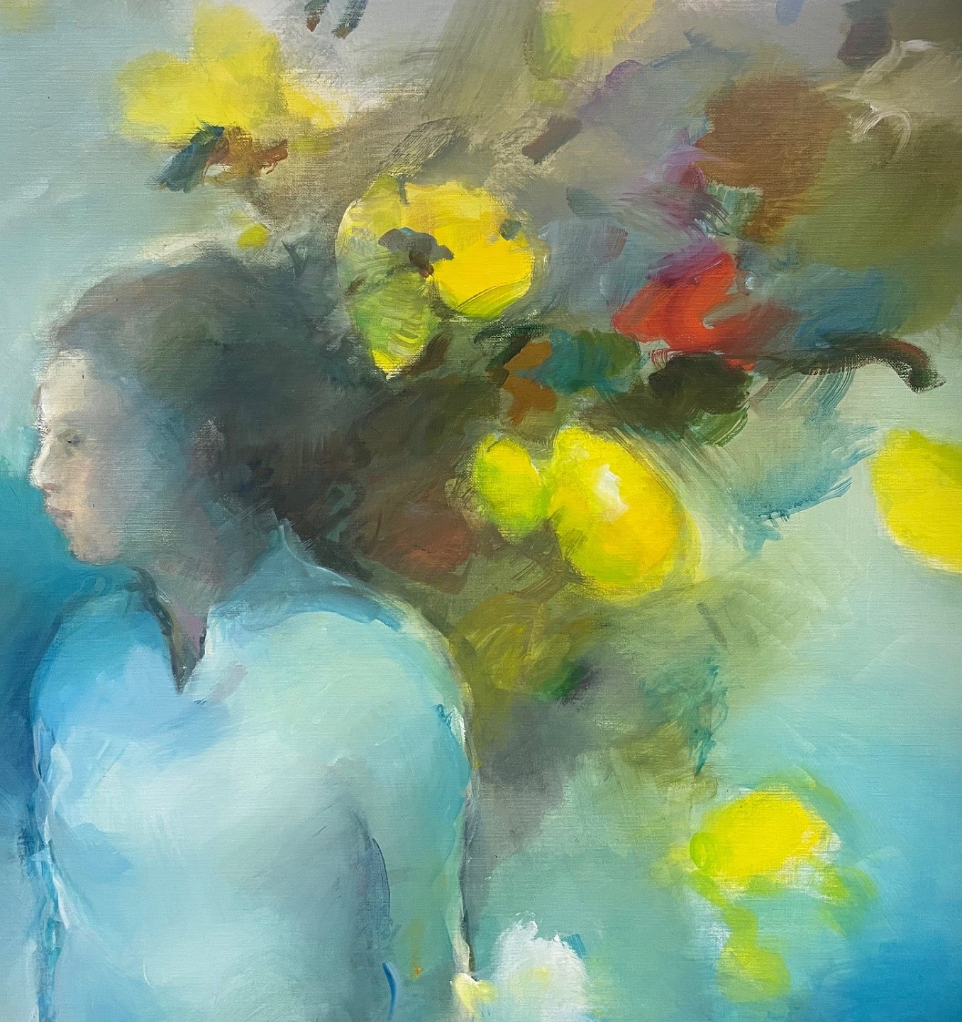 "Kærlighedens væsen, citron bjerget" stort flot maleri med skønhed og mystik, uden ramme.