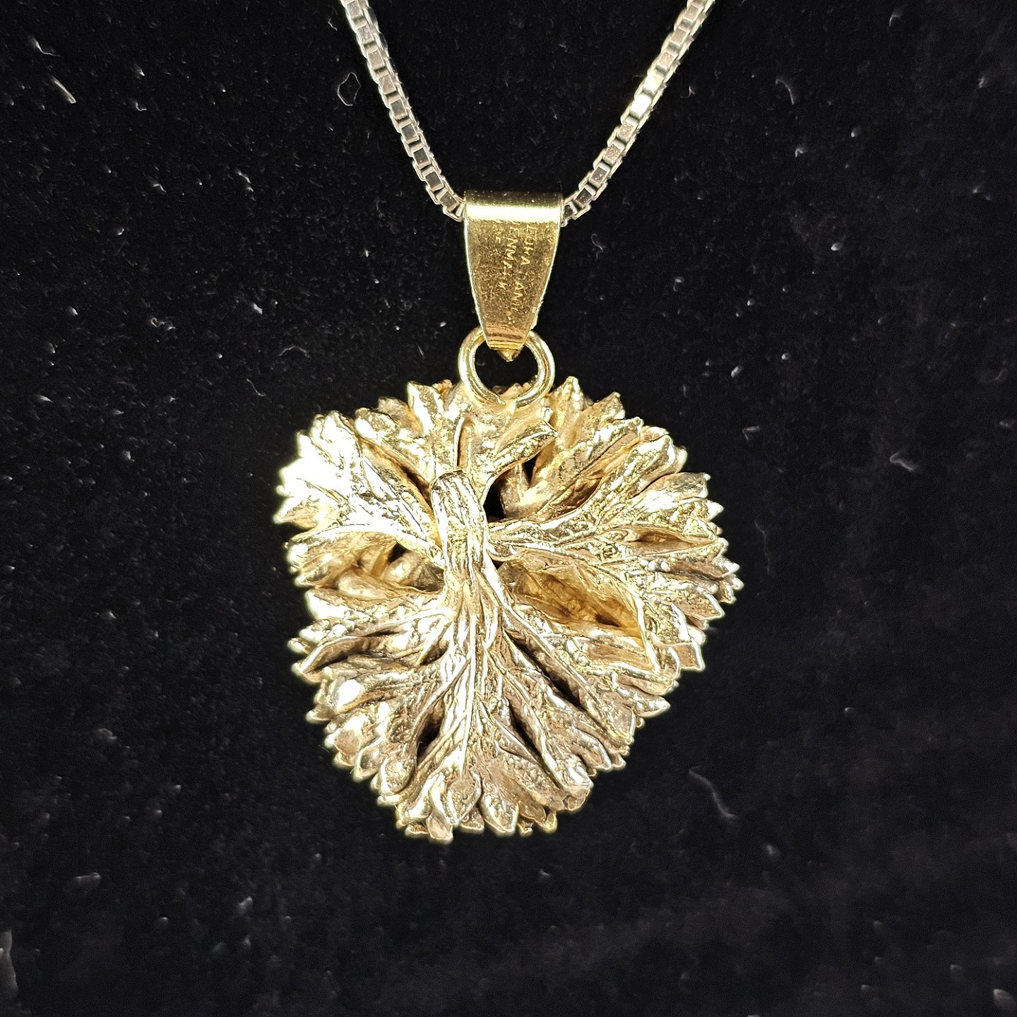 Ørestikker og vedhæng i forgyldt sterling sølv formet som en buket persille